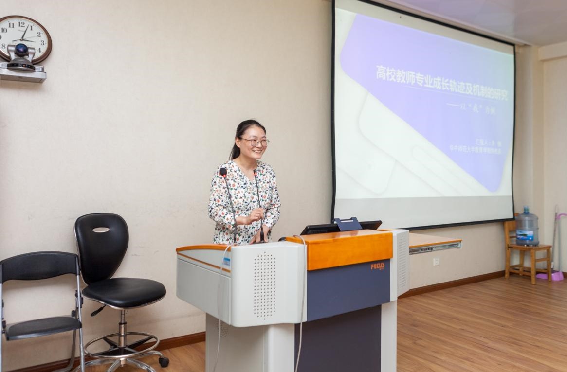 朱楠作题为“高校教师专业成长轨迹及机制的研究”的分享,她以“自我”为个体样本,采用行动研究和自传体研究的方法对自我进行了剖析。朱楠主要从专业成长轨迹的进入期、稳定期和实验期三个时期汇报了教学、科研、团队建设等情况。朱楠表示自己的成长离不开学院领导的关怀、中青年团队的支持、老教师的指导和同辈的扶持,未来将继续努力,力争有新突破。