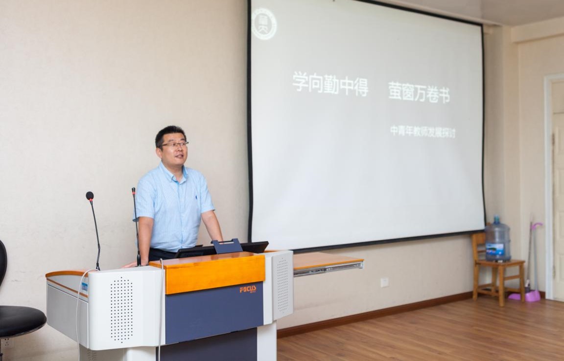 郑刚以“学向勤中得,萤窗万卷书”为题作分享,主要从发展状况、主要问题、努力方向三个方面进行汇报。他首先介绍了个人在教学和科研方面的有关情况,然后剖析了个人存在的不足,最后从课程思政、科学研究、教师党建、立德树人等四个方面提出了未来努力的方向。郑刚表示下一阶段拟对标教育学学科建设的新要求、对标教育史中青年优秀学者,努力在研究领域的特色建设上下功夫。