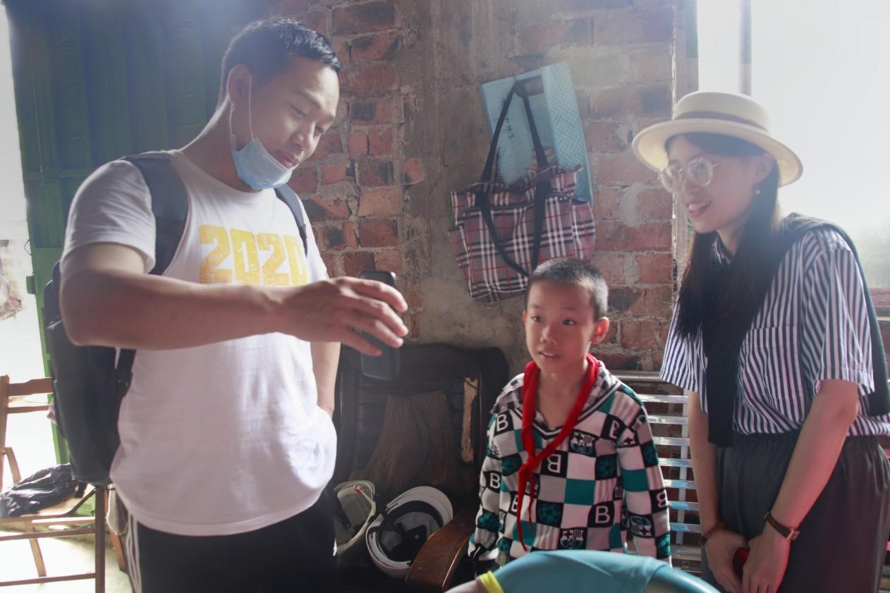随后,调研组一行穿过几条曲折的小路来到了辅导学生小惠家中。通过访谈得知,小惠由于误认为华教学堂所提供的线上辅导是暑期课程,因而当前已中断学习,在听了家访与调研组老师的介绍后,小惠的妈妈立即表示想继续接受线上辅导。“只要有网络,按照你的需求就可以让千里之外的大哥哥大姐姐给你上课,全程免费授课。”调研组老师俯下身来告诉小惠,“并且,除语数外课程外,你想学音乐、美术、舞蹈等,我们都可以匹配适宜的老师,为你量身定制教学方案,保证让你学得开心、学得有收获。”