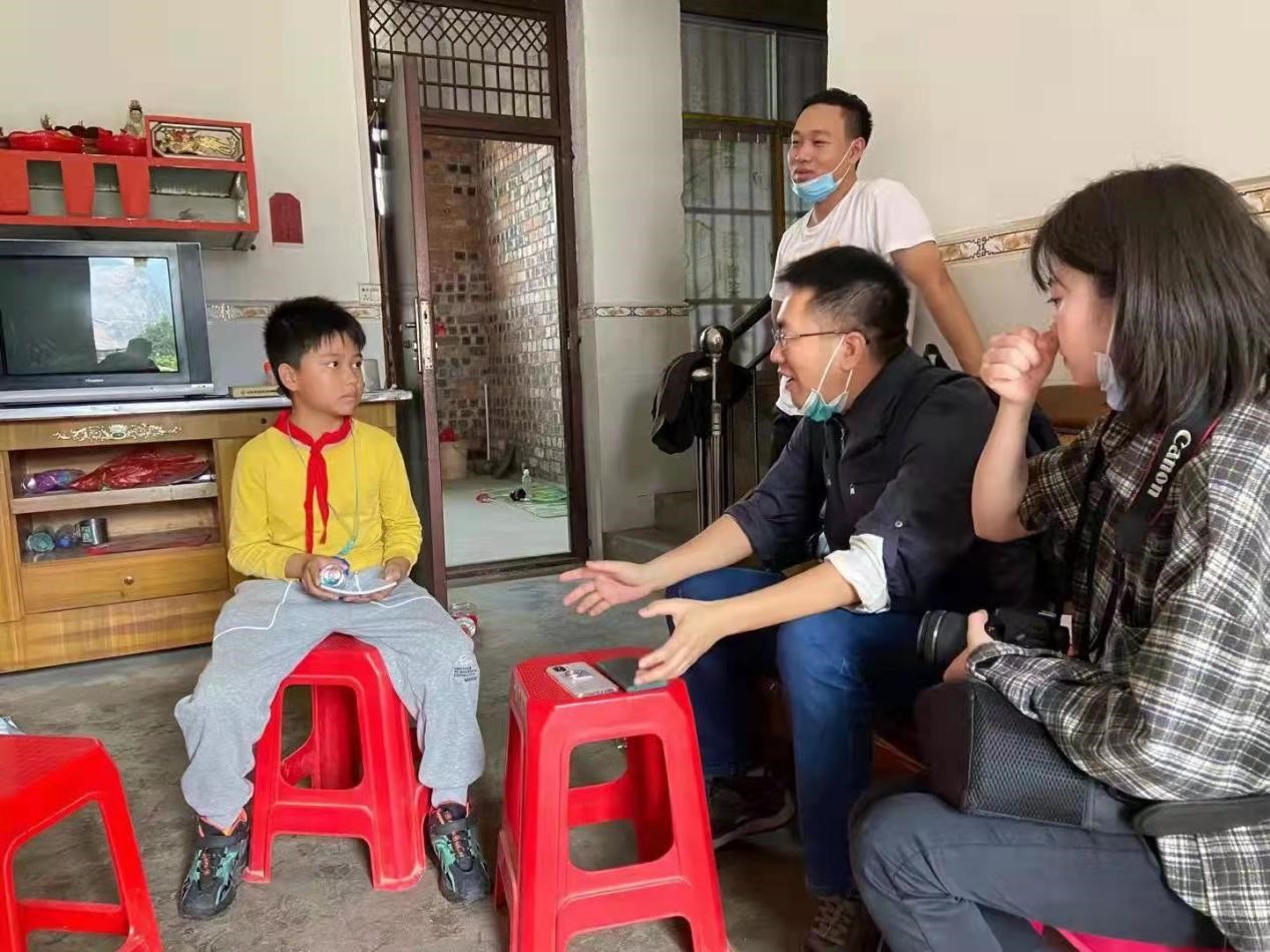 在结束对小杞的家访后,他主动提出要继续为调研组带路去同是三年级的小豪家。小豪因父母常年在外务工而寄居在姑父家里,面对家访他有些腼腆,但在和其辅导老师丁灿现场连线时,他还是大胆地跟老师说“老师,谢谢你,你辛苦了”。调研组老师亲切地告诉小豪,“如果期末成绩考得好,还有机会免费去武汉研学旅行,让丁老师给你面对面上一次课!”