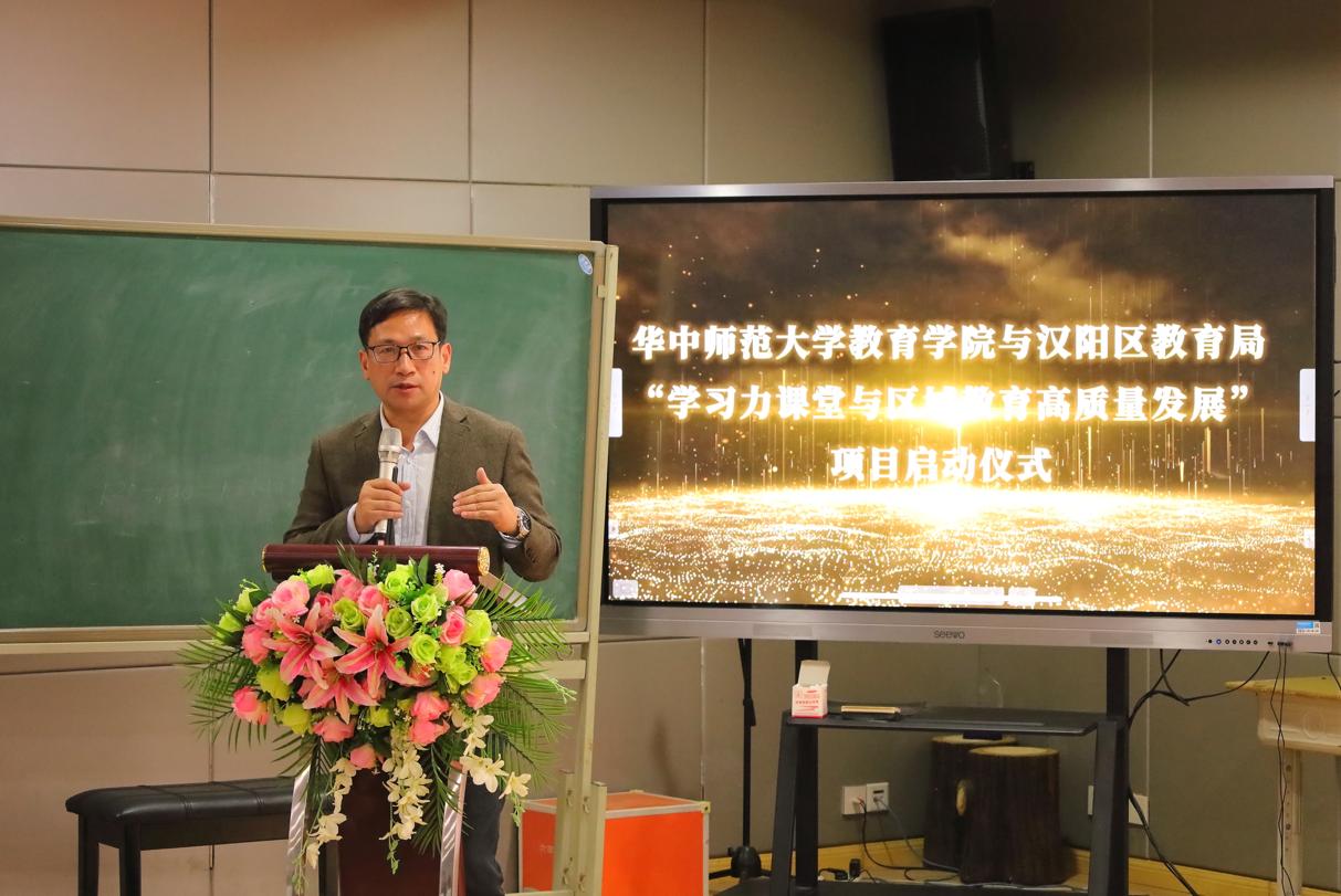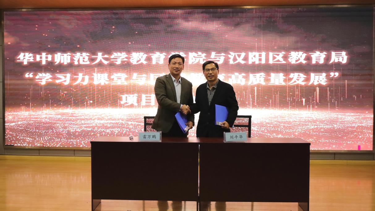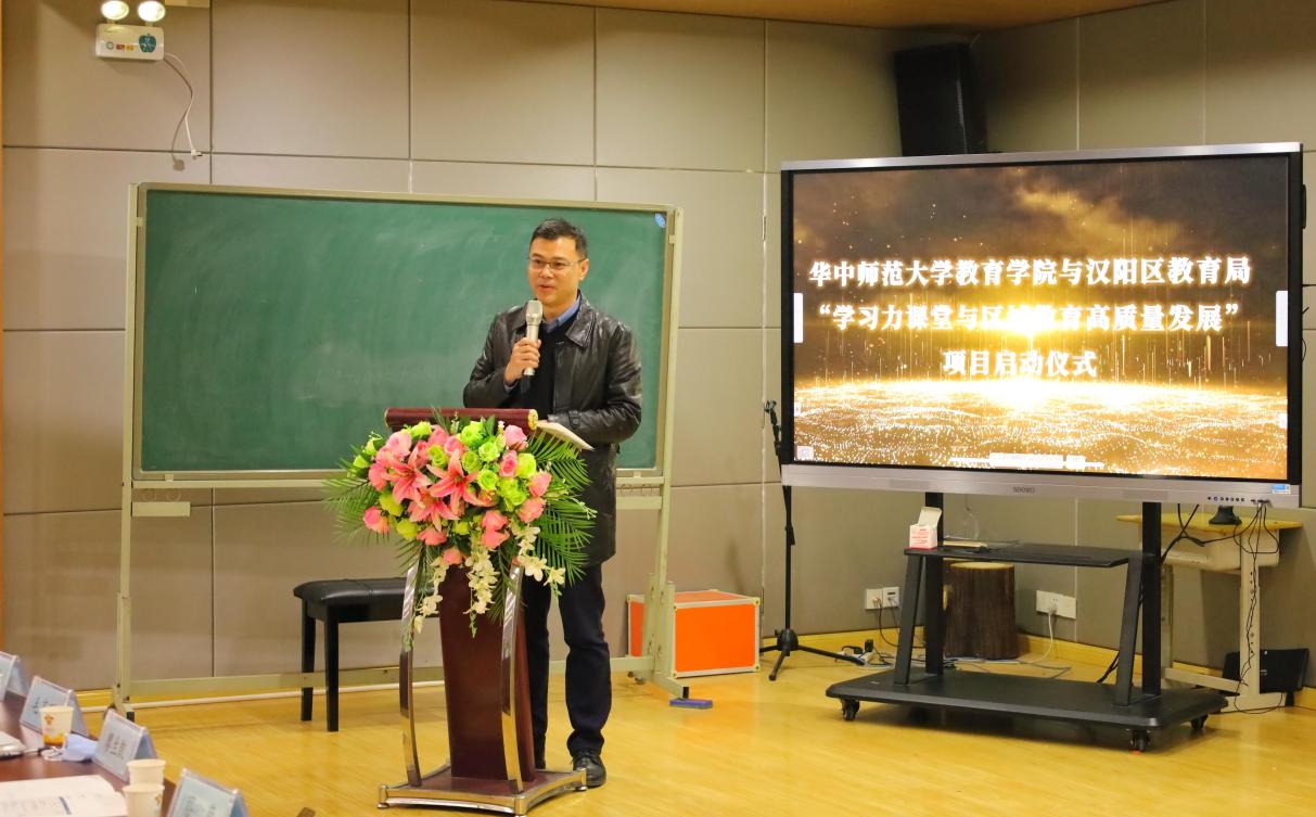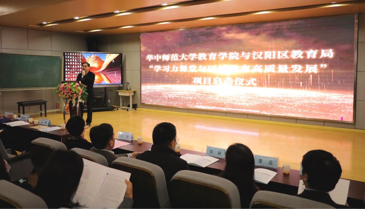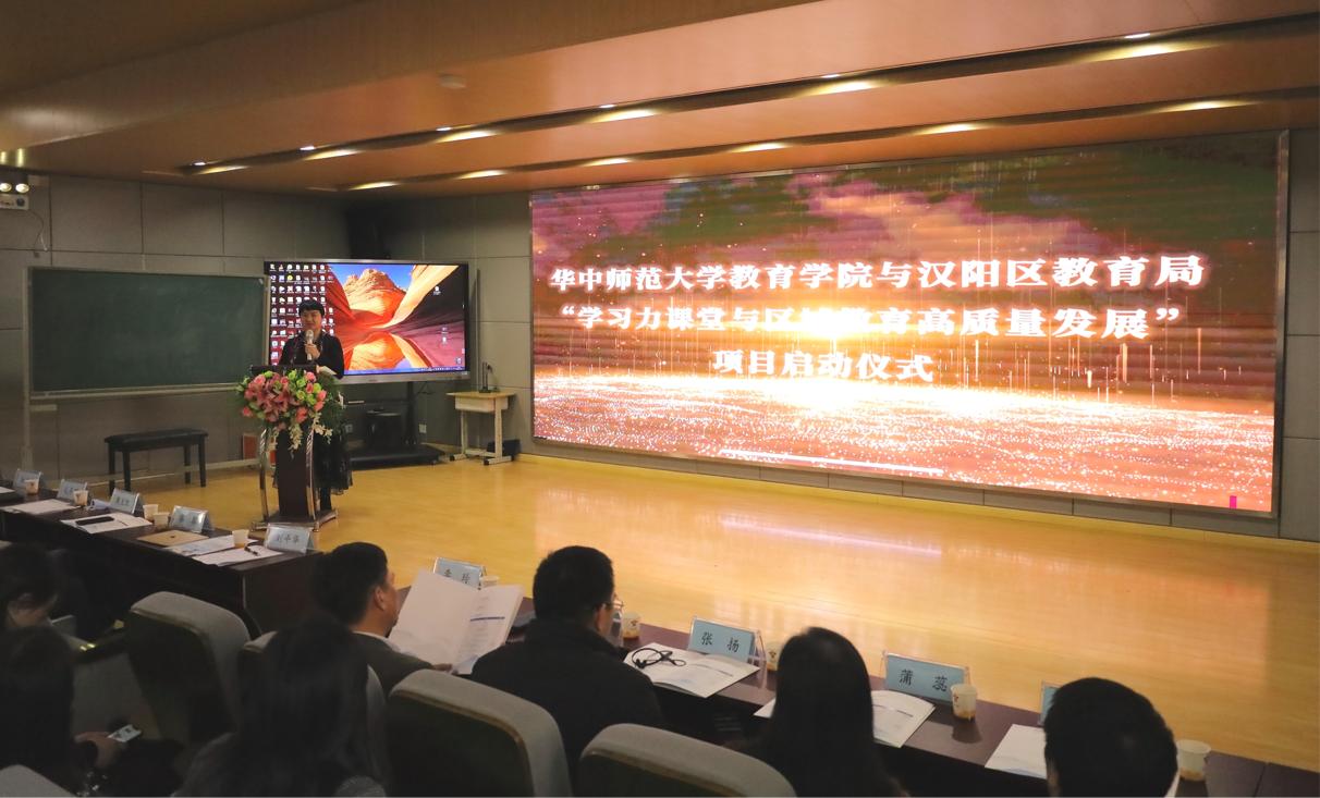 教育学院融媒体中心讯(通讯员 尹珺瑶)11月10日下午,华中师范大学教育学院与武汉市汉阳区教育局“学习力课堂与区域教育高质量发展”项目启动仪式在汉阳区钟家村寄宿小学隆重举行。汉阳区教育局局长刘平华、汉阳区教育局党委委员蔡葵、汉阳区教育局基教科张翼科长、汉阳区教育局教科室副主任廖生凯、6所汉阳区中小学校长代表及骨干教师代表出席。教育学院党委书记李玲、院长雷万鹏,党委副书记张扬及教师代表参加会议,会议由蔡葵主持。