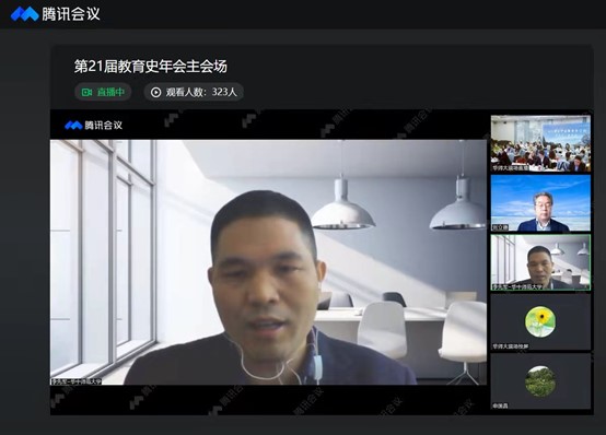 教育学院融媒体中心讯(通讯员 李先军)2021年11月26日,中国教育学会教育史分会第二十一届年会在线上举行,本届年会由华东师范大学主办。年会设有一个主会场和七个分会场。我院教育史专业硕士、博士研究生参加了线上会议。中国教育学会教育史分会副理事长、教育学院副院长申国昌教授主持大会主题报告会的上半场,报告人有浙江大学资深专家田正平教授、华东师范大学黄书光教授等。我院李先军教授在大会主题报告的下半场做了主题报告,报告题目是《论历史记忆的“生产”及其在教育史研究中的运用》。在下午的分会场报告中,申国昌和赵凯合作的论文在第四分会场进行交流,赵凯在会上做了《孟禄访华期间的教育交往与中国教育早期现代化》的报告。在会议期间,我院师生踊跃参与讨论,表现良好,获益良多。