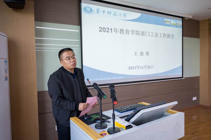 教育学院融媒体中心讯(通讯员 张婕)2021年11月26日下午,教育学院第四届教代会第四次全体会议在田家炳楼905教室举行。此次教代会以十九届六中全会精神为指导,结合学院发展实际,以“激发教研室活力 促进教师高水平发展”为主题。教育学院党政领导、全体教职工参加了会议,会议由工会主席王建梁主持。