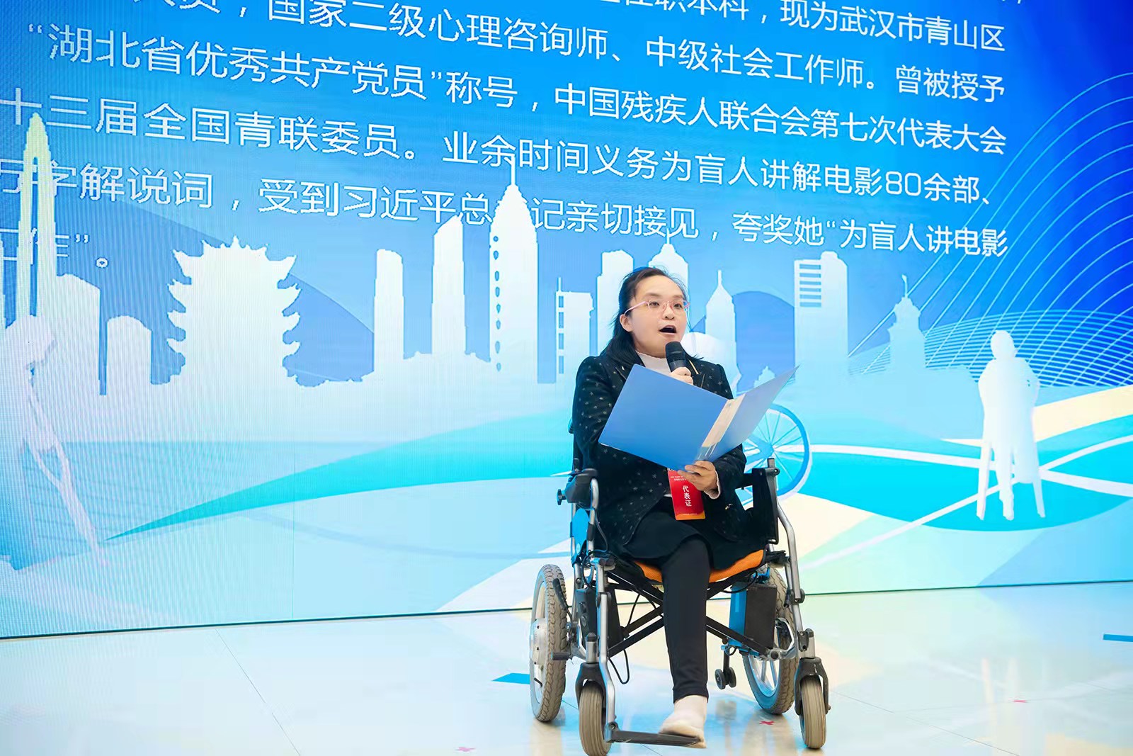 启动仪式中,残疾人大学生及毕业生代表讲述了他们的故事。“科研强国有我”是袁鑫的目标。作为武汉科技大学控制科学与工程专业的博士生,靠着一股不服输的精神,袁鑫勤学苦读,从本科到博士七年间,靠单手敲代码获奖30多项,其中不乏含金量颇高的发明专利、实用新型专利、外观设计专利。