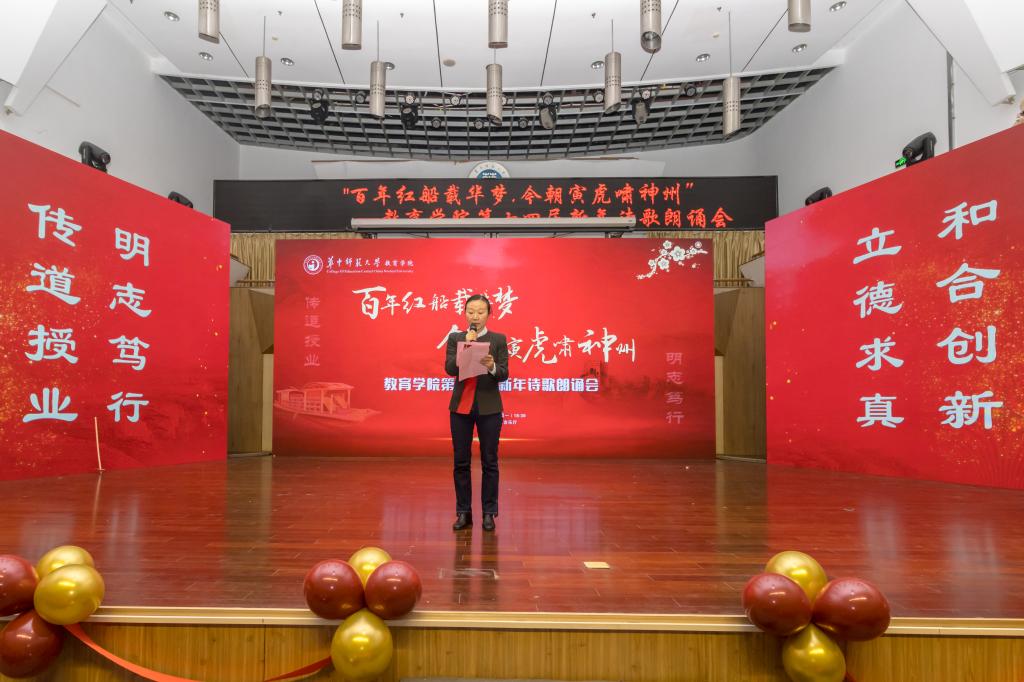 本届新诗歌朗诵会正值建党百年的时代契机,以“百年红船载华梦,今朝寅虎啸神州”为主题,分为“星火·风雨兼程”、“激流·长风破浪”、“新禧·同心筑梦”三个篇章,由学院师生共同演绎,融合初心使命、革命精神、人民情怀等元素,包含歌舞、朗诵、话剧等多种形式。