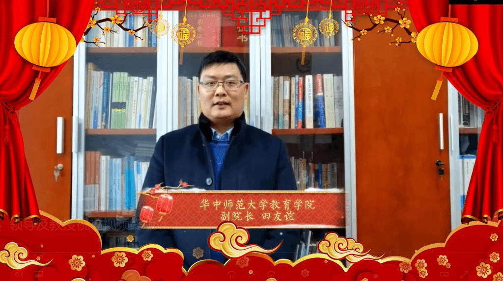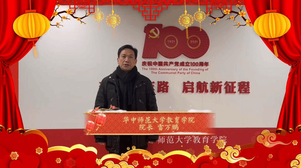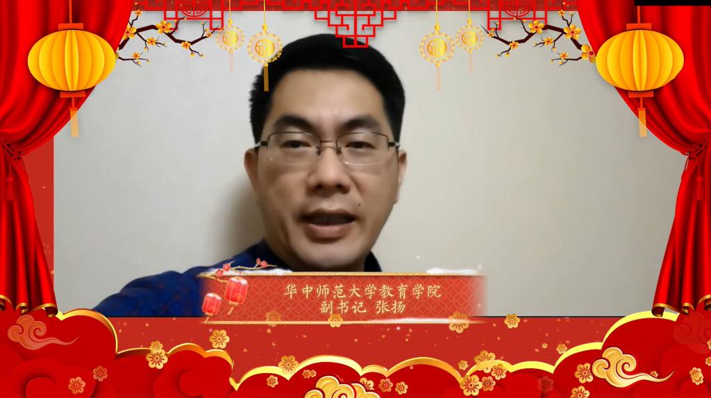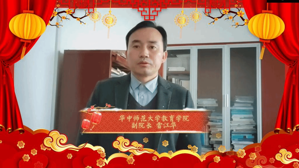 晚会伊始,华中师范大学教育学院党委书记李玲、院长雷万鹏、党委副书记张扬、黄玉新、副院长雷江华、田友谊以及教师代表郭元祥教授为华教学堂师生送上了新年祝福,愿教中开新局,学中谱新篇。