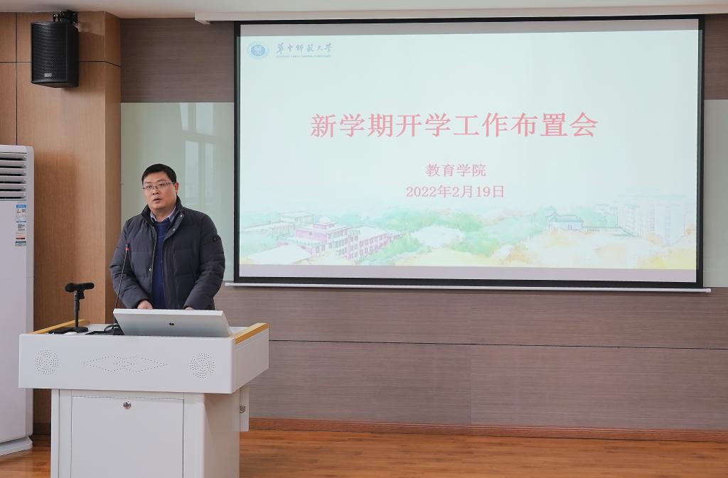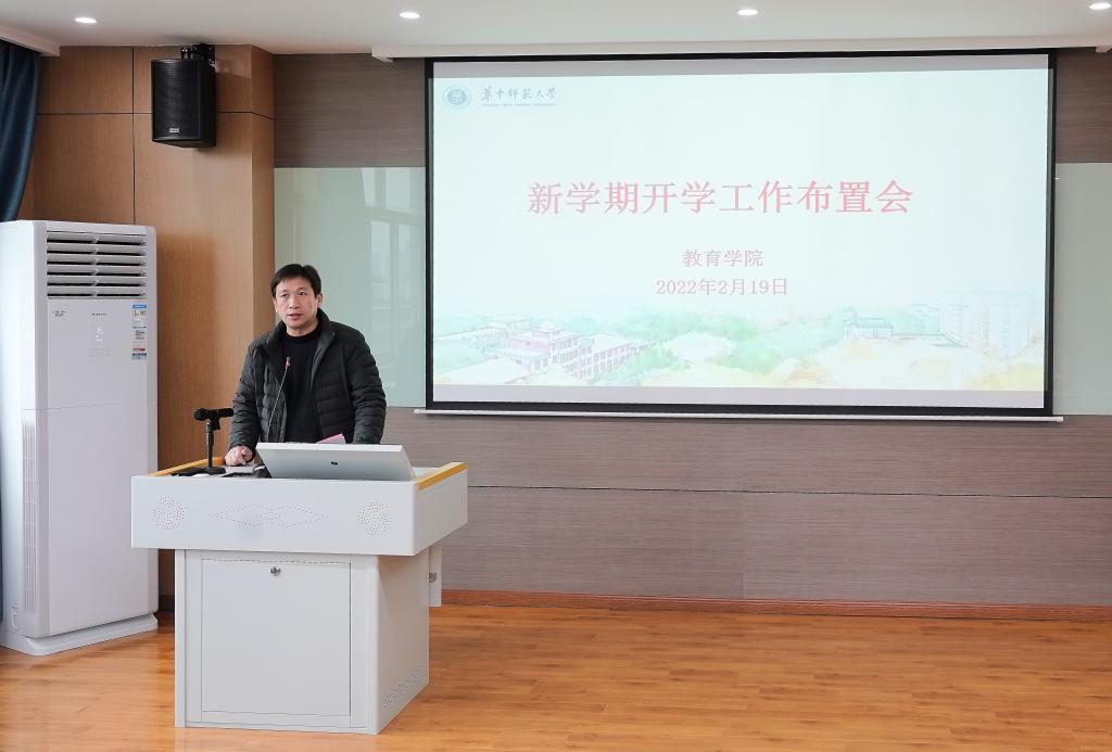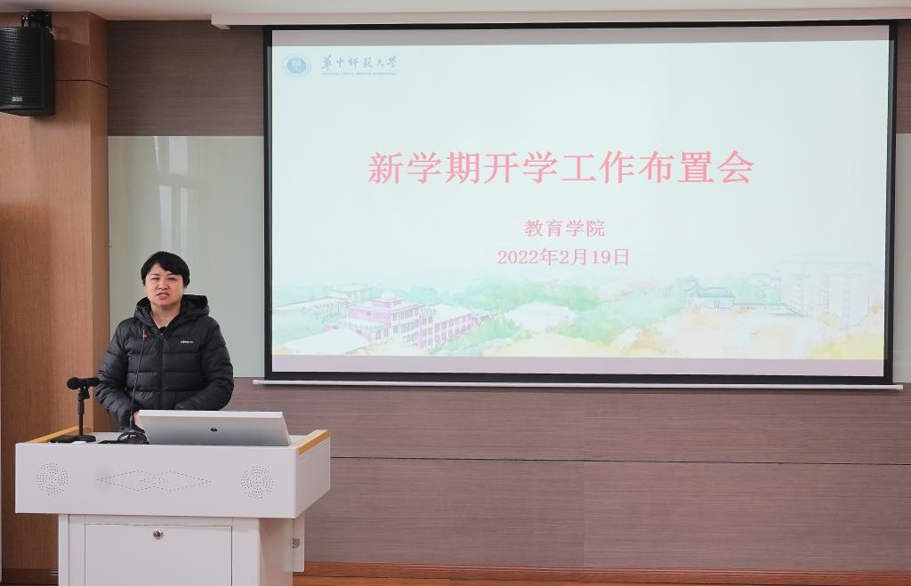 教育学院融媒体中心讯(通讯员:覃娟 王健)2022年2月19日下午,我院在田家炳905学术报告厅召开新学期工作布置会,全体教职工参加,会议由党委书记李玲主持。