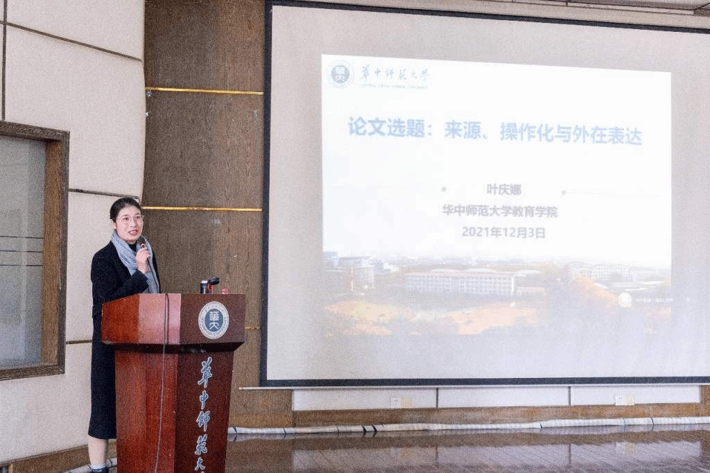 教育学院“启明·科研素养提升营”系列讲座由教育学院团委学生会学科部主办。本场讲座的主题为“论文选题:来源、操作化与外在表达”,叶庆娜从何为选题、选题来源、选题类型、选题原则、选题与问题的关系、选题与标题的关系、好标题的特征这七个方面展开讲解,旨在帮助教育学院本科生了解科研选题的关键点,切实解决同学们科研方面的困惑,从而有方向、有方法地开启科研之旅。