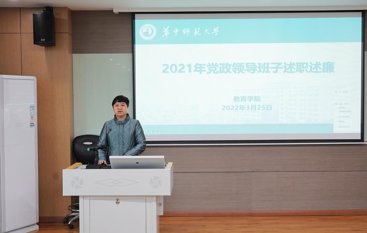 教育学院融媒体中心讯(通讯员 唐璐)根据《华中师范大学中层领导班子和领导干部年度考核实施办法(修订)》的有关精神,3月25日下午,学院于田家炳楼905室召开2021年度中层领导班子和领导干部述职述廉大会。全体教职工及学生代表参会,党委书记李玲主持会议。