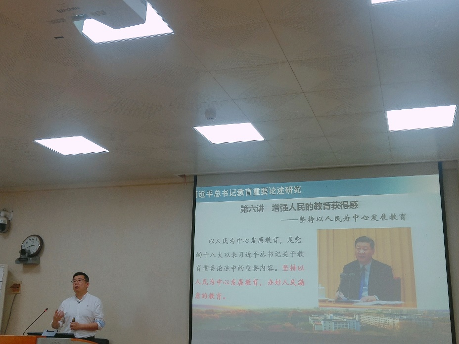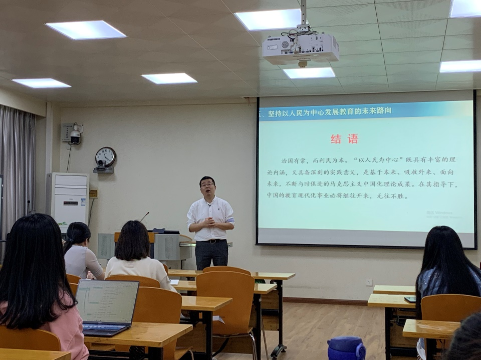 整场报告气氛热烈,郑刚教授边讲授边与学生互动交流,还为同学们留有思考题,启发学生深入思索办人民满意的教育的实践径路。经过本场报告的学习,同学们切实理解了以人民为中心发展教育的科学内涵,深刻认识到了“以人民为中心”是基于本来、吸收外来、面向未来,不断与时俱进的马克思主义中国化理论成果。至此,此次报告在同学们热烈的掌声中圆满结束。