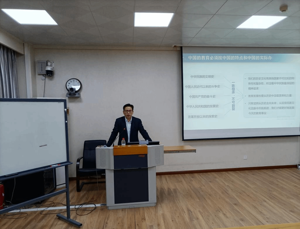 他认为,我国独特的历史、文化、国情决定了教育必须走自己的发展道路。中国人民培育了历久弥新的优秀文化,形成了独特的价值体系和思想体系,我国的历史文化有其他国家不可比拟的特殊性和复杂性,积淀着中华民族最深层的精神追求。教育发展要让中华优秀传统文化成为新时代办好中国特色社会主义教育的底气,从历史中汲取营养和力量,从延续民族文化血脉中开拓前进,坚持从历史走向未来。