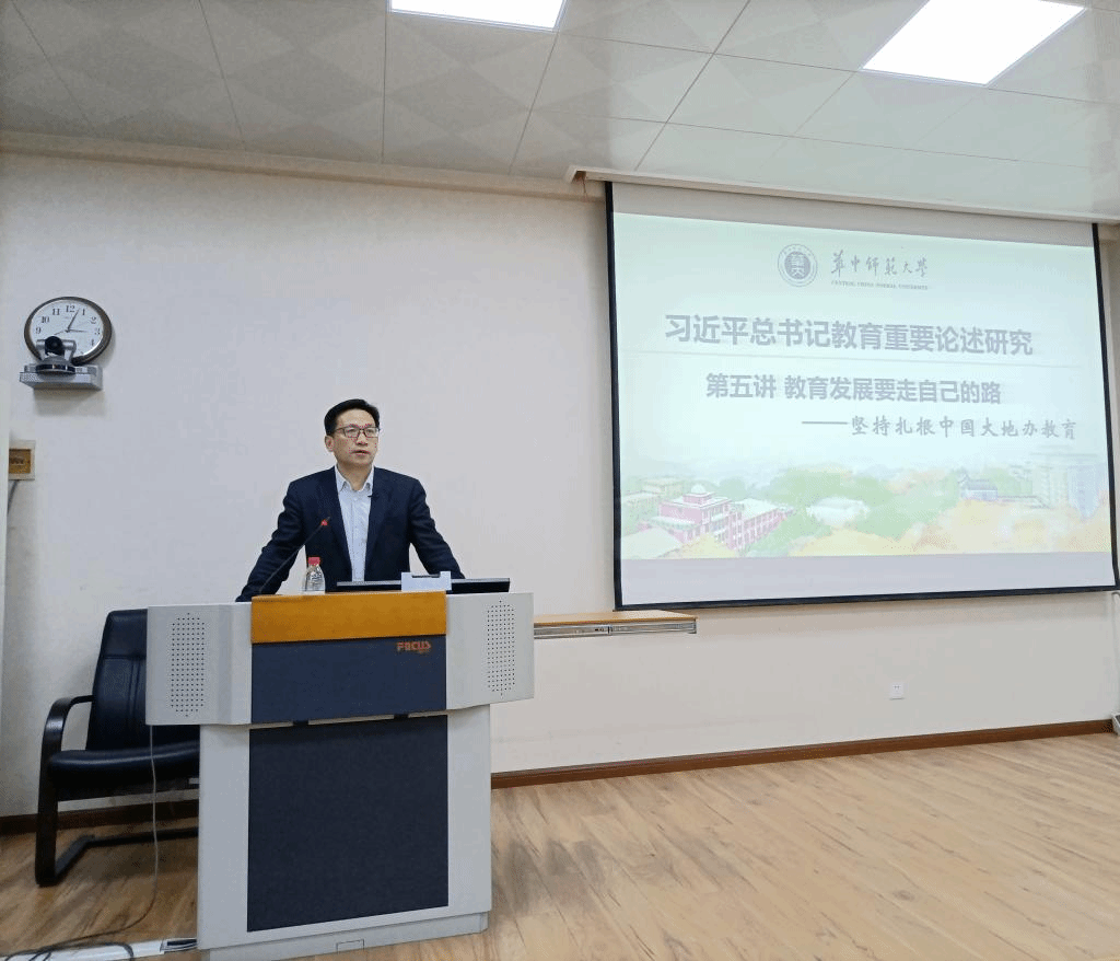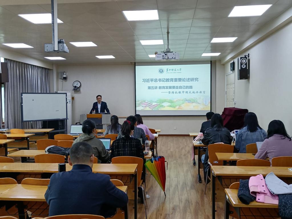 教育学院融媒体中心讯(通讯员 向正权)2022年4月15日,华中师范大学教育学院“习近平总书记关于教育的重要论述”第五讲在田家炳楼502教室成功举行,教育学院院长雷万鹏教授以“教育发展要走自己的路——坚持扎根中国大地办教育”为主题做精彩报告,学院2021级全体博士研究生参加学习。