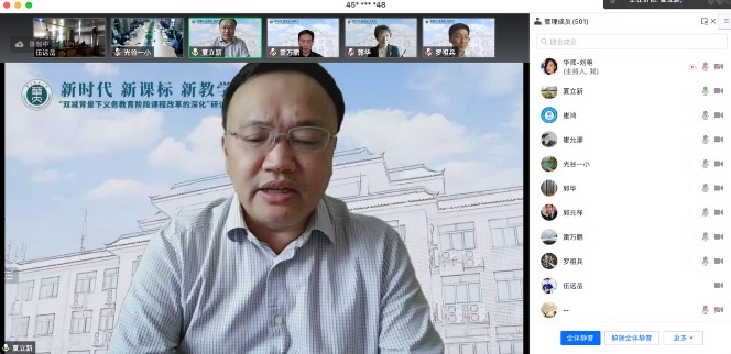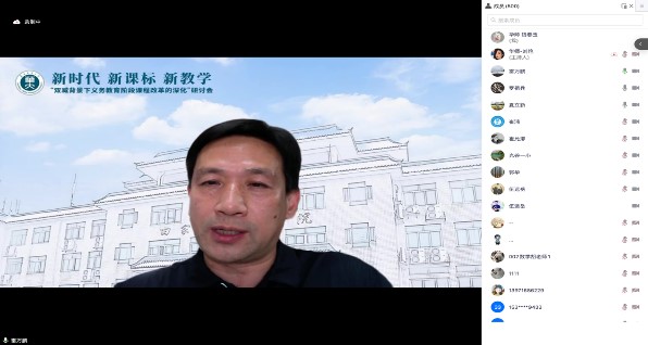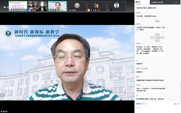 华中师范大学副校长夏立新教授向参与此次活动的学者专家们表示衷心的感谢,向云参与的来自全国各地的学者、一线教师和学生表示最热烈的欢迎。夏校长指出,新修订的义务教育课程方案和课程标准从国家层面厘清了育人目标、进一步明确了改革方向。准确理解和把握新课程方案和课程标准的精神,深化义务教育课程与教学的改革,构建双减背景下核心素养导向的教学结构或学习的形态,是本次研讨会的指导精神。