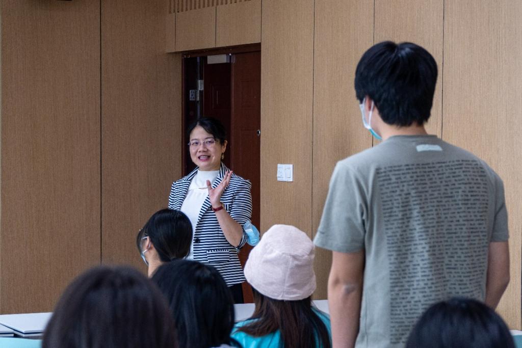 教育学院融媒体中心讯 (通讯员:胡家嘉 李青桂)5月15日,华中师范大学第三十五届“树人杯”艺术文化节—未来教师美育素养沙龙第三场在田家炳教育大楼905室举行。华中师范大学国际文化交流学院副教授、博士硕士生导师袁海霞作题为“普通话正音及发声技巧”的讲座分享,教育学院党委副书记黄玉新、教育学院各年级本科生代表线下参与活动,教育学院2018级辅导员张萌主持活动。