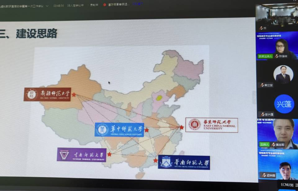 进入虚拟教研室的第一次工作会议环节,华中师范大学雷江华教授、华南师范大学谌小猛副教授、云南师范大学马金晶副教授、新疆师范大学张玉红教授、华东师范大学昝飞教授等依次以各校特殊教育专业建设情况及对特殊教育专业虚拟教研室建设的建议为主题,进行主旨报告。各高校代表表示,期望通过联合共建特殊教育虚拟教研室,充分发挥虚拟教研室动态开放、协同共享的优势,推动国内相关高校特殊教育专业优化人才培养方案、加强课程建设、深化教学改革,形成信息时代跨时空、跨地域的特殊教育专业育人新机制、新模式,提升特殊教育专业人才培养质量。随后,刘春玲教授组织各高校专家学者就特殊教育专业虚拟教研室建设相关问题进行了深入讨论。