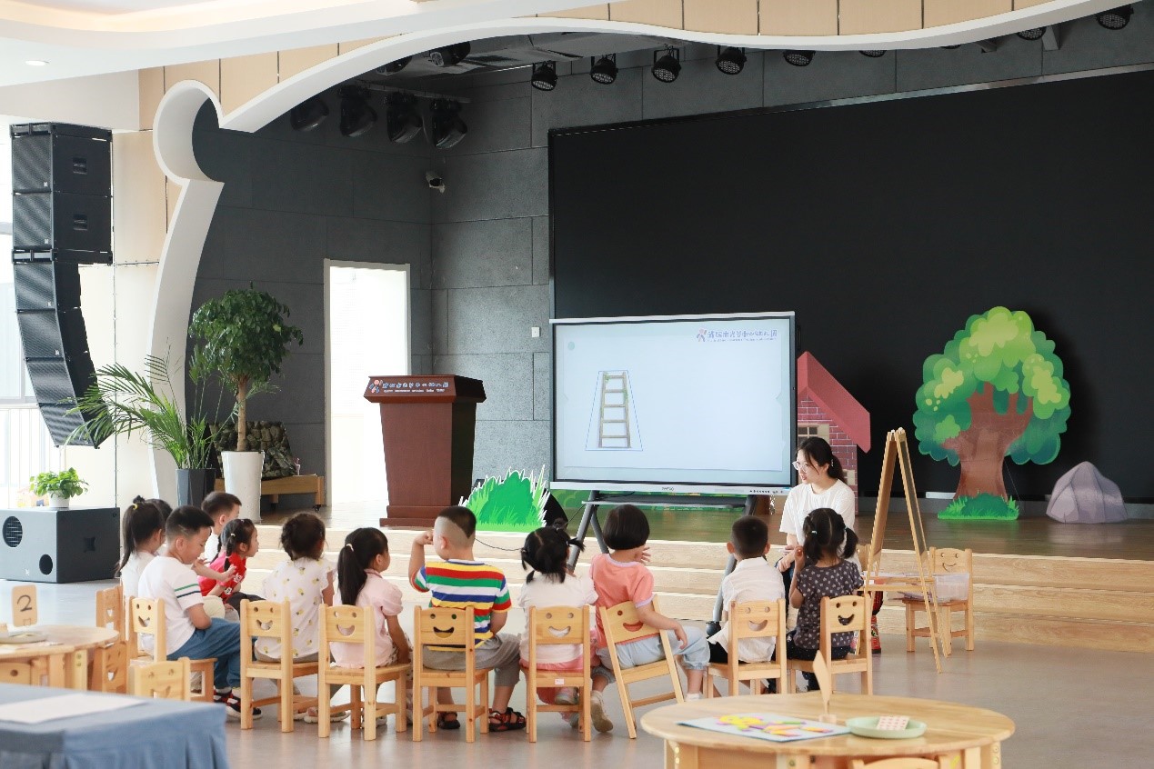 展示活动第一项是实习生李诗钰的公开课,主题是中班科学《我和梯形做游戏》。活动伊始,李诗钰用“身边的图形”来唤醒幼儿关于图形的已有经验,引出活动主题。在教学过程中,她教态自然,声音洪亮,并准备了丰富的活动材料,通过三个环节:找一找——生活中的梯形、比一比——与正方形的异同、玩一玩——梯形游园会让幼儿直接感知、实际操作。最后的“梯形游园会”环节,孩子们的探究过程更是津津有味。