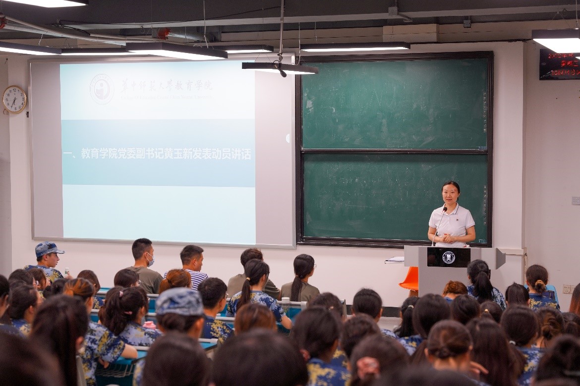 教育学院融媒体中心讯(通讯员 赵恒健 刘茜蓉)6月22日,教育学院2021级军训教官欢迎仪式暨动员大会在校八号教学楼8201室举行。教育学院党委副书记黄玉新出席大会,团委书记、2021级辅导员刘雅欣,军训教官,及2021级全体本科生参会。刘雅欣担任主持人。