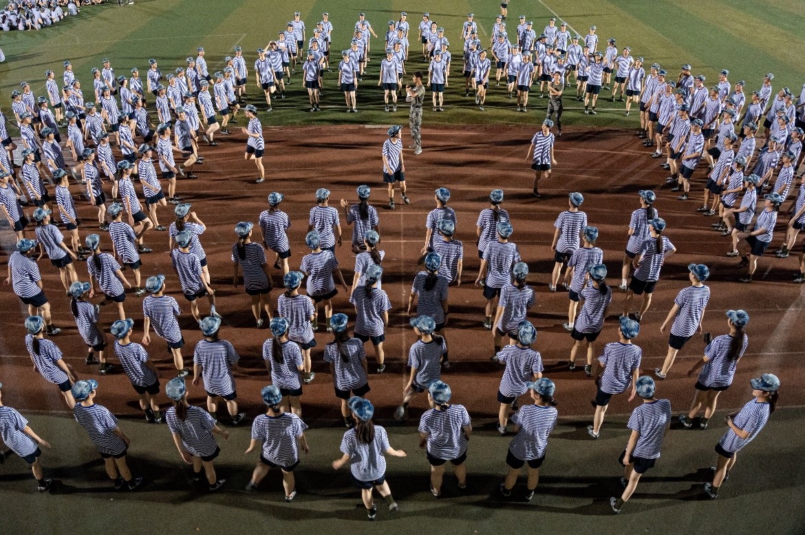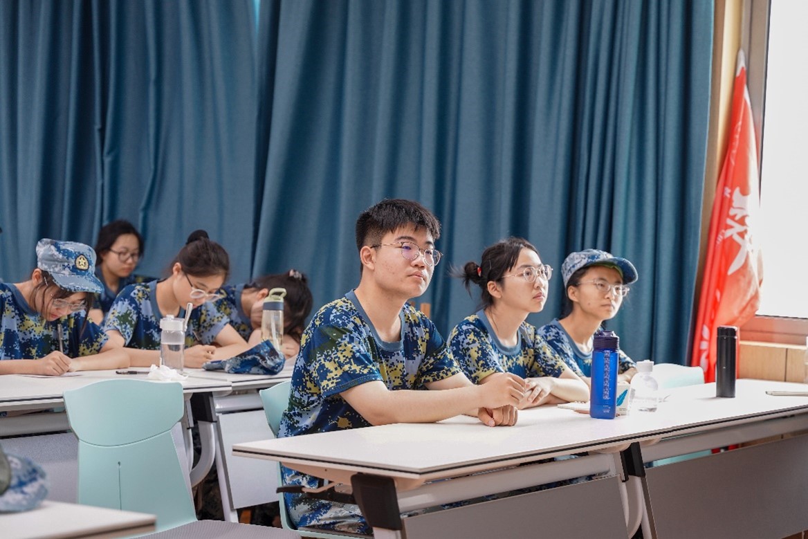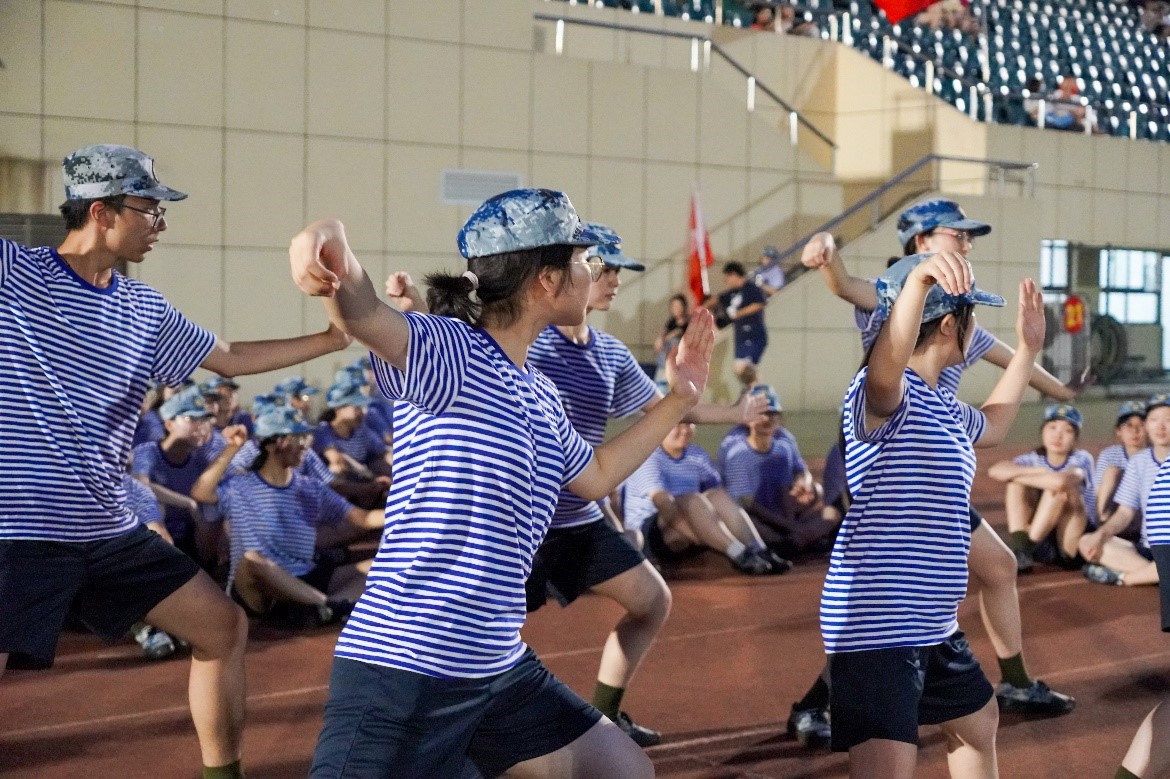 首日上午,教育学院学员观看学习了“携笔从戎 精忠报国”华中师范大学参军入伍学生故事分享会,从朋辈榜样的身上领会忠于职守、保家卫国的精神,感受军人风范与荣光。下午的室外训练中,教育学员听从指挥,有序进行了站军姿、稍息立正、向左向右转等基本动作训练,并穿插分享生活、才艺表演的休息活动,体验军训第一课的汗水与快乐。