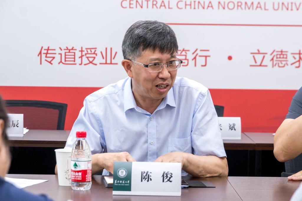 汉江师范学院陈俊副校长希望华中师范大学在教育学科提质、青年教师提升、学生素质发展、教学资源开发等方面给予大力支持,并就此提出了具体的合作思路与实施措施,最后陈校长对华中师范大学一如既往的关心支持表达了感谢,他希望在“协同提质计划”实施中两校有更多的学生交换,人员交流,情感交融和文化交汇,共同促进乡村教师队伍建设与乡村振兴。