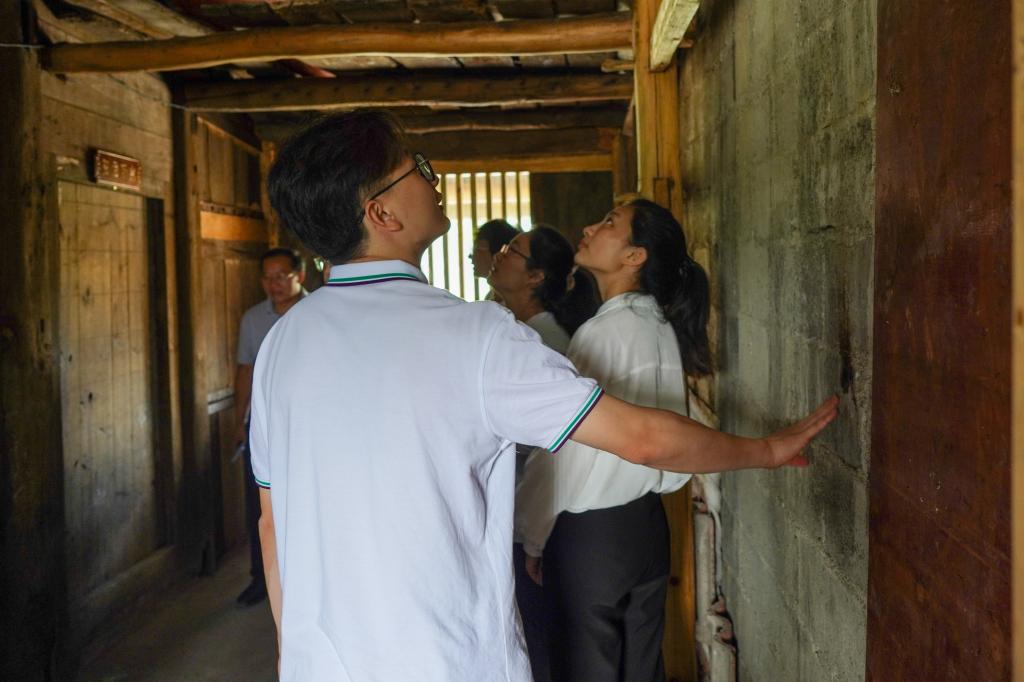 赤色圣地,血脉流深。在中共湘鄂西中央分局旧址,实践队员参观了贺龙元帅的故居,访问当地党员和住民,夯实党史学习j教育成果。官店镇有着绵长的红色历史文化,1928至1933年间,贺龙军长于此活动了6年,与周逸群、关向应等老革命家一同发动群众,收神兵,拉队伍,壮大革命力量,到红军长征时,这里走出了三大主力之一的红二方面军劲旅。队员们从当地党员口中了解到,近年来官店镇为进一步弘扬好红色文化,传承好红色基因,依托当地丰富红色资源,在党史学习教育、乡村经济振兴等方面取得建设性成果。