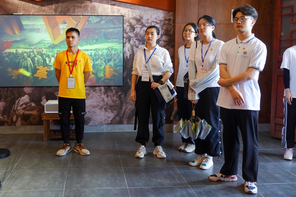 到达红军小学后,队员们在校长谌令杰的带领下参观了校史馆,就官店革命历史、红军小学办学情况等进行了解。为进一步凸显红色精神引领,各小组在活动设计、教具制作等方面花心思下功夫。除去讲授红色知识,实践队员还开展了“建功新时代”主题演讲、“重走长征路”素质拓展等活动,帮助当地学生切身体悟党史国情,系好青少年价值取向的“第一粒扣子”。