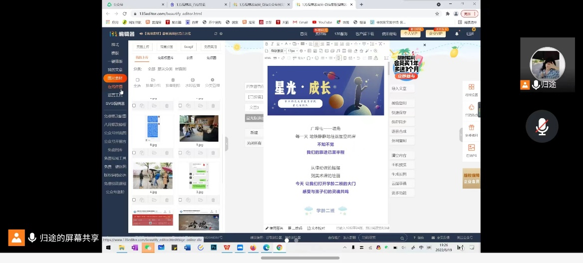考虑到学生兴趣不同,此次训练营活动采用自愿参与的原则,新生同学可以根据兴趣方面进行着重听、着重练的选择。为进一步提高同学们的参与感,三位主讲人注重形式的多样性与内容的适切性,在分享相关经验的同时,运用对比图片、插放视频、在线编辑等手段,让同学们在线上收获有意思、有意义的交流体验。“此次训练营是我在大学参与的第一次活动,除去了解了校园宣传,这让我对即将开启的大学生活更加充满期待。”2022级新生杨雨盟对训练营的反馈很不错。
