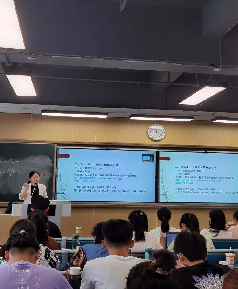 王雯副教授的《幼儿园班级管理》、夏家发副教授的《教学活动设计》、彭兴蓬副教授的《融合教育》、刘丽伟博士的《幼儿园科学教育》在开学第一天全部开课,主讲教师们以饱满的热情走进教室,充分利用信息技术手段开展线上线下同步教学,在开课伊始激发了学生们的学习兴趣,为之后的教学奠定了良好的基础。