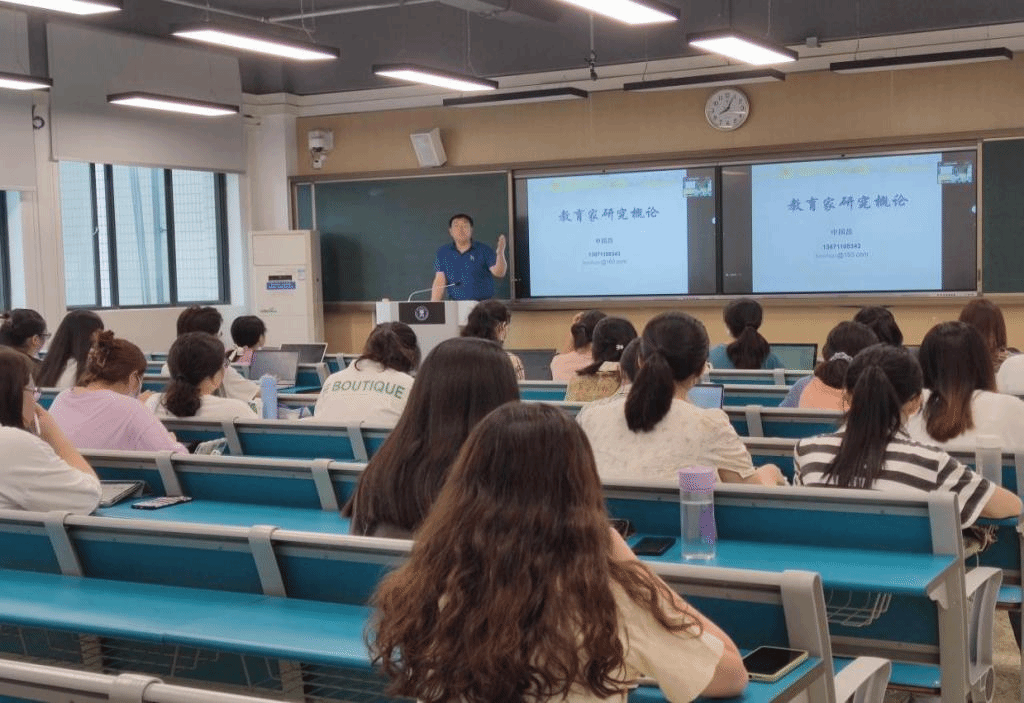 来到8201教室,授课教师刘来兵副教授正在讲授《中国教育名家思想》这门课程,旨在帮助本科生掌握中国教育思想的精髓,发扬优良传统,传承教育思想,联系当今中国教育实际,古为今用。