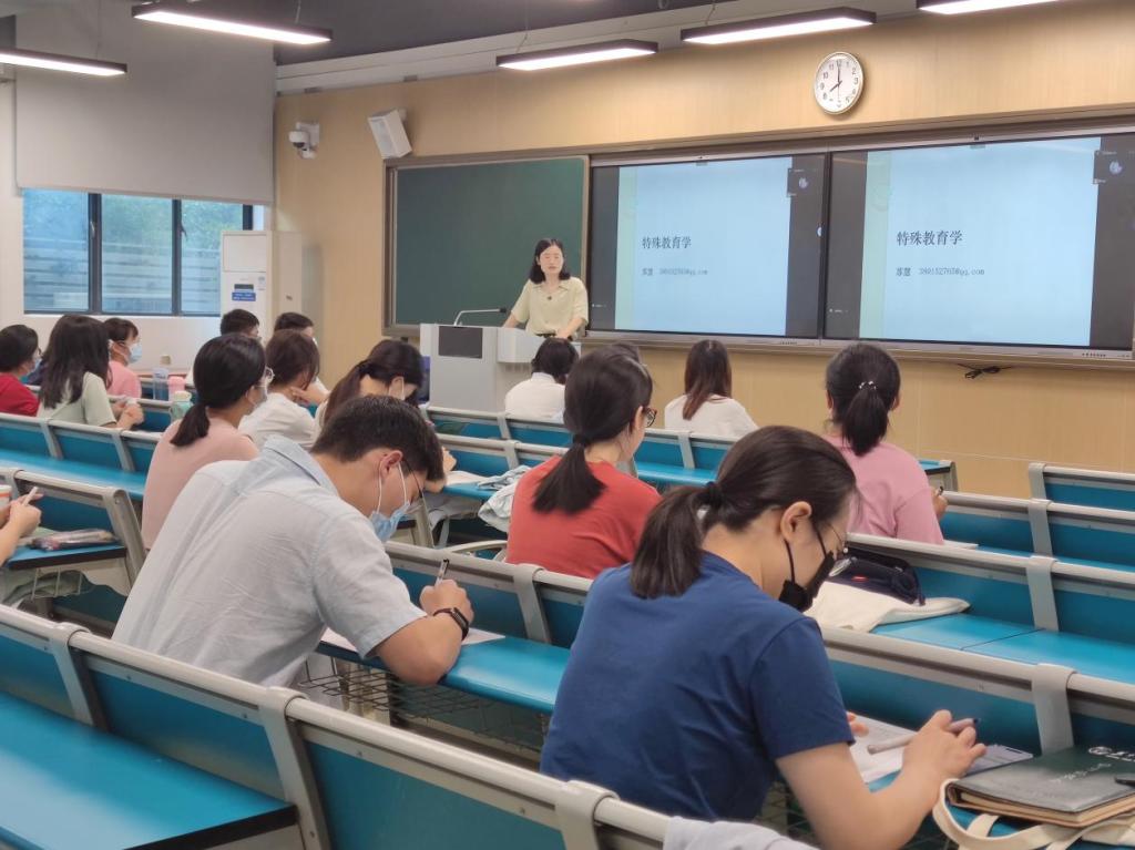 在8202教室,苏慧副教授语重心长地向同学们介绍《特殊教育学》这门课程的特殊性和重要性,并且讲解了学习该课程的学习方法和学习要求,引导学生们制订学习计划。院党委副书记黄玉新、副院长雷江华、工会主席王建梁、特殊教育专业负责人徐添喜参与听课,并就教学内容进行了探讨。