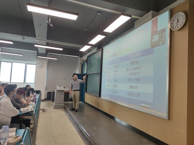 8315教室内,申国昌教授向同学们细致介绍了《教育家研究》这门课程的教学大纲和学习目标。在课堂上,申国昌教授与同学们积极互动交流,共同探讨该门课程的学习方式、学习目标等等,是一堂“生动”的课。院党委副书记黄玉新、副院长雷江华、19级辅导员王诗薇参与听课,仔细观察学生们的听课情况,记录听课感受,课间就课堂教学进行了交流。