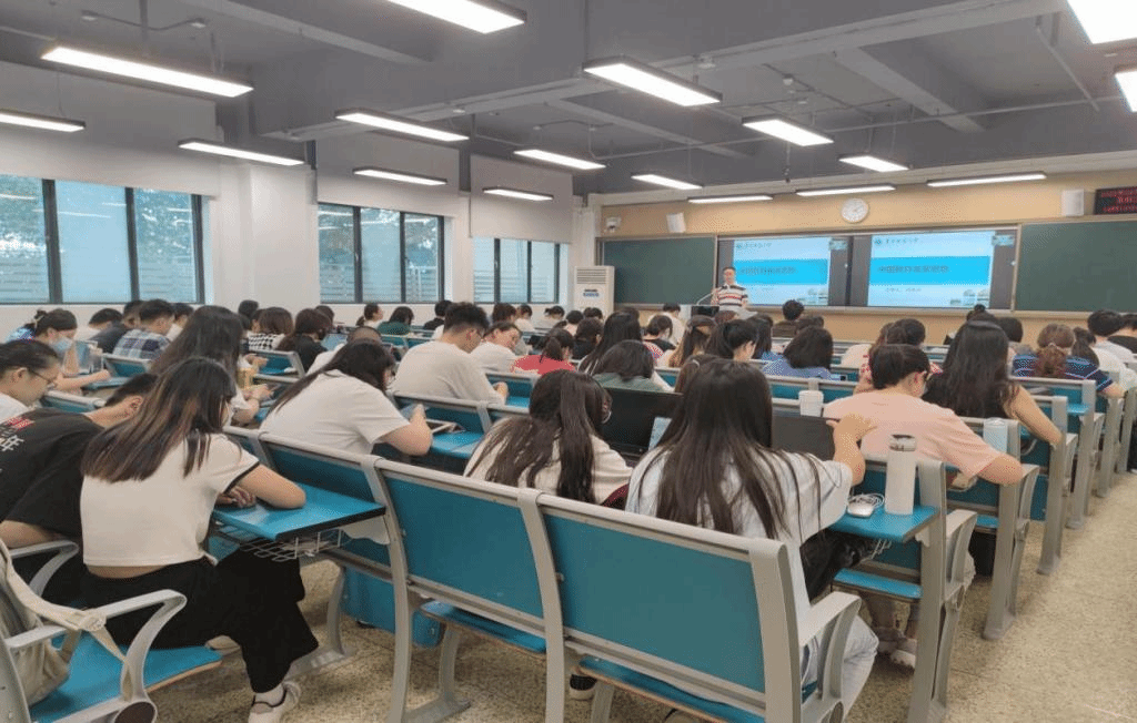 8302教室内,学生们正聚精会神地听着授课教师滕媛对《学校管理学》这门课程内容的介绍,认识到这门课以学校管理现象及其规律为研究对象,通过学习学校管理的基本理论,指导学校管理工作。院长雷万鹏、副院长雷江华、教育经济与管理研究所所长马红梅、19级辅导员王诗薇参与听课。课间,听课老师们和蔼地勉励同学们要认真学好专业知识,尽快适应大学生的身份转变。