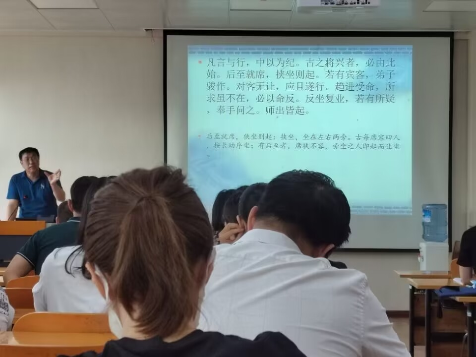 在田家炳楼502室,申国昌教授采用讲解与研读相结合的授课方式为同学们讲授《中外教育名著研读》,带领同学们感受本真的教育史,展示了中外教育名著中的经典韵味。学院领导、督导、博士生导师组长等参与听课,对教学效果给予充分肯定,并就教学内容和教学方法进行交流。