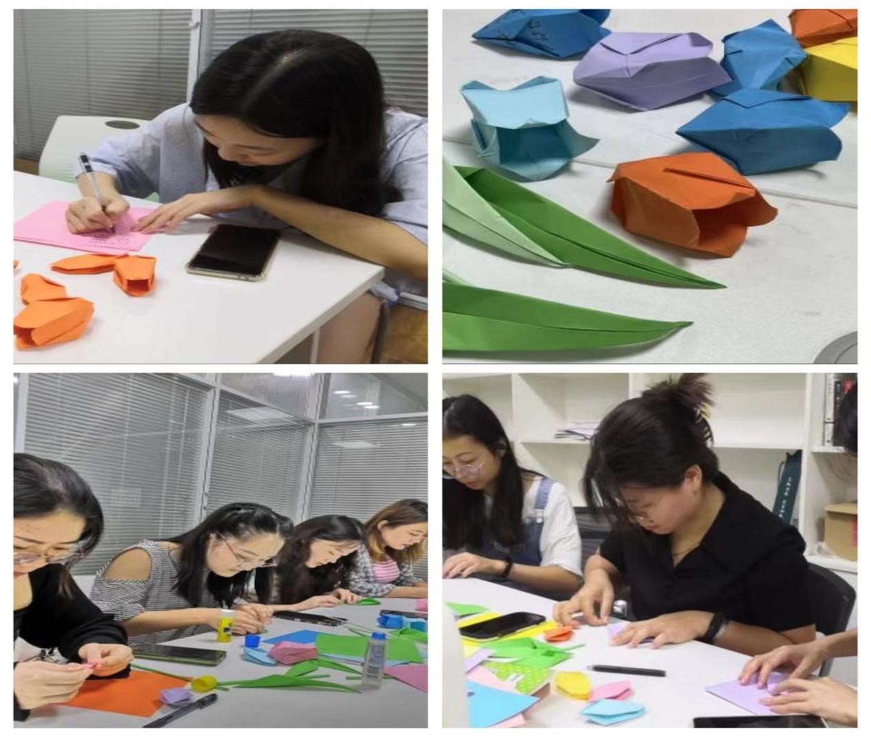 据了解,为感谢马丹老师给予“华教学堂”的悉心指导及对其教育精神的敬佩之情,“华教学堂”党支部成员和志愿者自发组成了“手工组”,连夜制作了三十八朵“会说话”的郁金香,每一朵都藏着志愿者们对马老师祝福与敬意。