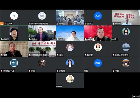 本次交流论坛采取线上线下相结合的形式举办,会议由两个环节组成,首先各位专家学者逐一分享学习党的二十大精神的心得体会,随后就《习近平总书记教育重要论述研究》丛书的编撰情况进行交流讨论。出席本次会议的专家学者有全国人大常委会委员、湖北省人大常委会副主任、中国教育学会副会长、华中师范大学国家教育治理研究院院长周洪宇教授,中国教育报刊社原党委书记社长翟博研究员,北京师范大学教育学部部长朱旭东教授,广西师范大学副校长孙杰远教授,河南工业大学党委书记、河南大学教育学部部长刘志军教授,湖北师范大学校长雷儒金教授,湖北第二师范学院党委书记杨鲜兰教授,太原师范学院党委书记张惠元教授,北京师范大学中国教育政策研究院执行院长、国家高端智库教育国情调查中心主任张志勇教授,华中师范大学国家教育治理研究院执行院长、教育学院博士生导师申国昌教授。华中师范大学国家教育治理研究院的部分博士生、硕士生旁听了本次会议。会议由申国昌主持。