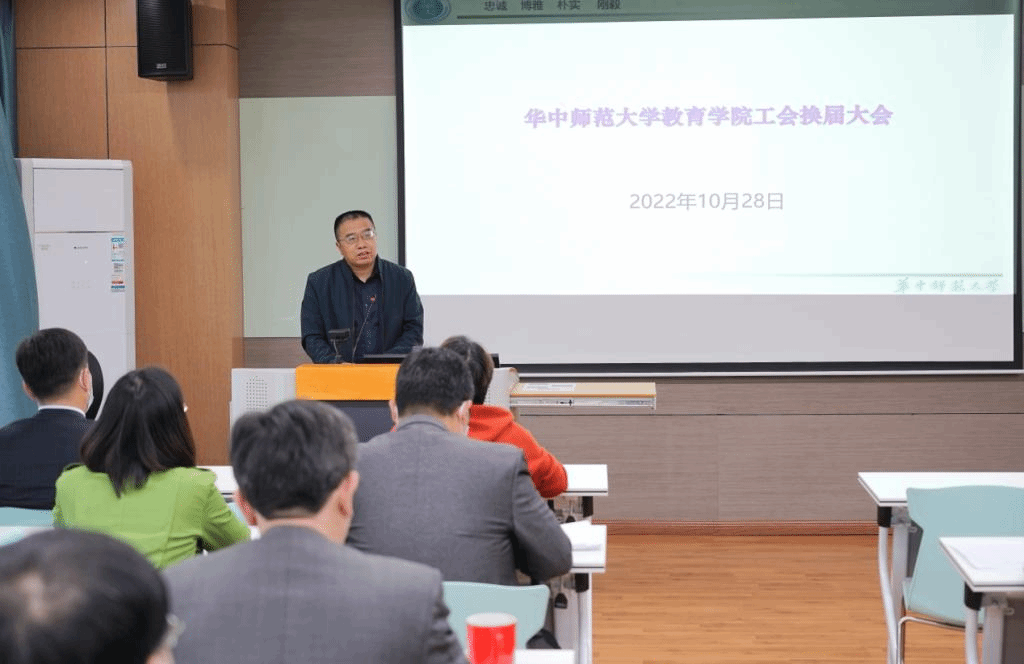 教育学院融媒体中心讯(通讯员 覃娟 王健)2022年10月28日下午,我院工会委员会换届大会在田家炳905报告厅举行,大会由第四届工会主席王建梁主持,全体工会会员参加。