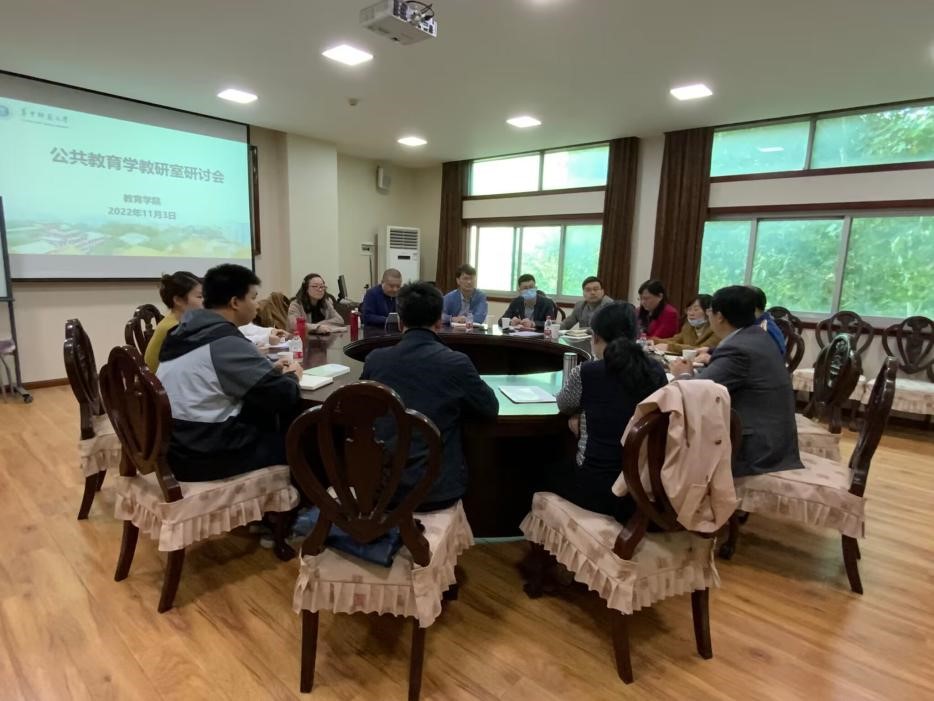 教育学院融媒体中心讯(通讯员 刘小芳 买孜亚·赛米)为积极响应学校增强本科基层教学组织活力的号召,发挥基层教学组织引导青年教师专业发展的功能,11月3日下午,公共教育学教研室教师教育课程教学研讨会在田家炳楼403会议室顺利召开。参加本次研讨会的有教学副院长、公共教育学教研室主任田友谊,基层教学组织成员罗祖兵教授、许锋华教授、董英副教授、唐斌副教授、卢旭副教授、熊淳副教授、张添翼副教授、邹红军副教授、孙银光博士、白颖颖博士、滕媛博士、刘庆龙博士、孙冉博士等,会议由田友谊主持。