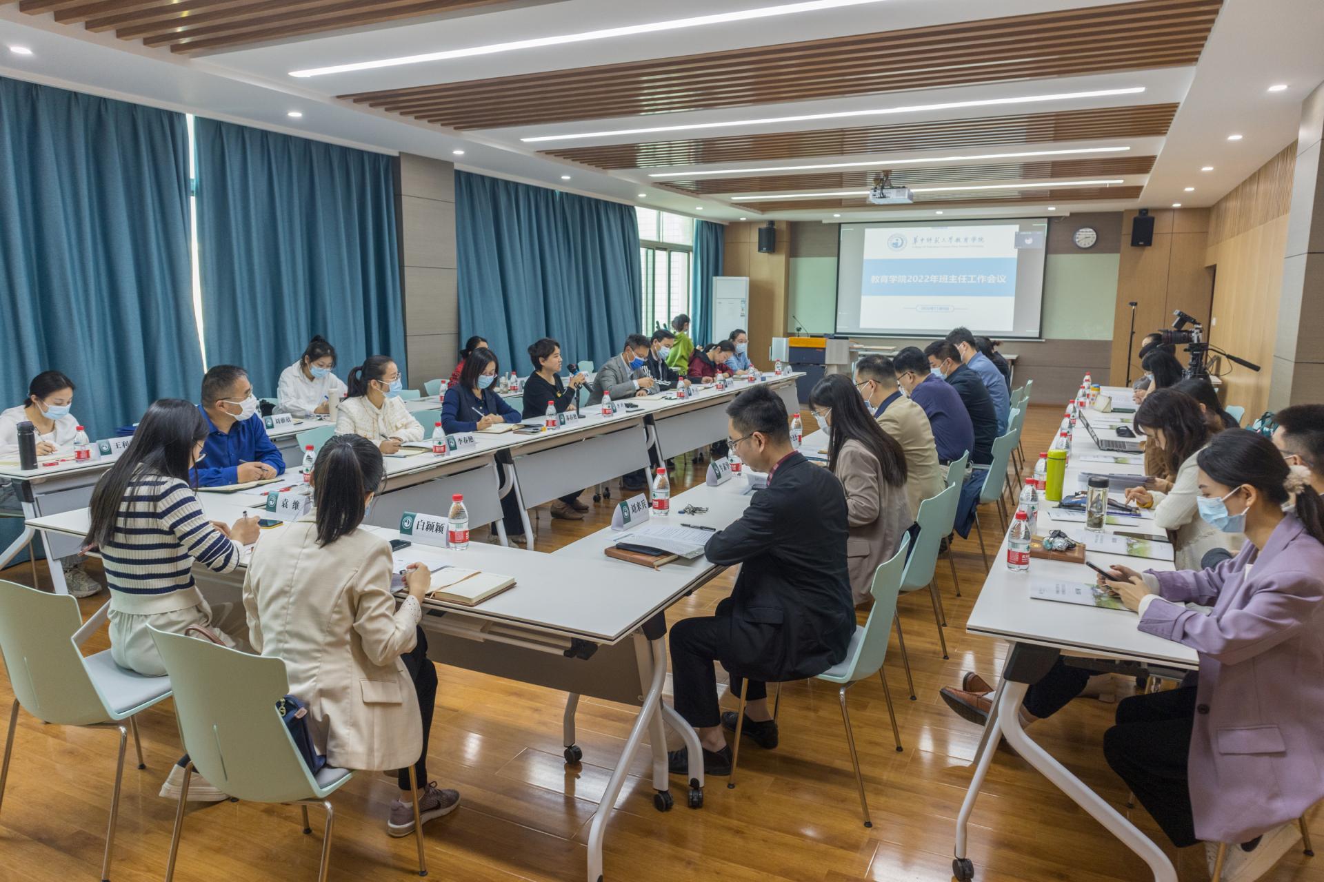 教育学院融媒体中心讯(记者 王利娜)11月9日,教育学院2022年班主任工作会议在田家炳教育大楼905室举行。校党委学生工作部副部长、思政处处长李刁莅临指导,教育学院党委书记李玲,党委副书记黄玉新、苏春艳,副院长雷江华等出席,党委学生工作部新疆籍派驻教师李春艳、25位在职本科生班主任、23名本研外聘班主任、全体本研辅导员参会,会议通过线上线下相结合的方式开展,黄玉新主持会议。