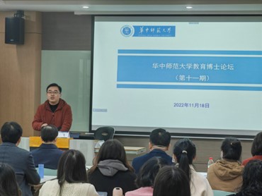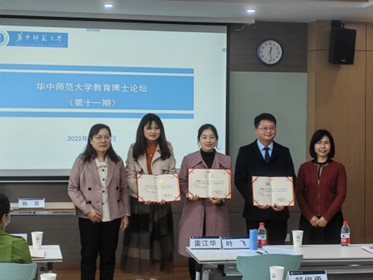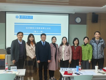教育学院融媒体中心讯(通讯员 袁永强 慕婷婷)2022年11月18日上午9:00,由华中师范大学研究生院主办、教育学院承办的第十一期“教育博士论坛”在田家炳楼905会议室举行。本次论坛由教育博士研究生郝俊勇、王金、陈锋娟、陈晨主讲,点评嘉宾为教育学院博士生导师但武刚教授、蒲蕊教授和心理学院博士生导师龚少英教授,主持人为教育学院副院长雷江华教授。研究生院副院长叶飞、教育学院党委副书记苏春艳出席论坛。