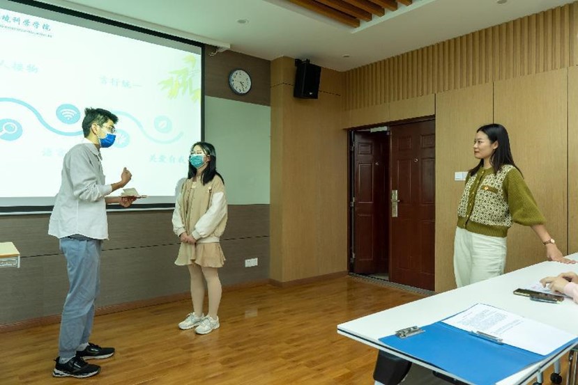 第二方面,王曼玉就礼仪细节这一点展开说明。她强调,学生骨干应当提高思想认识,树立大局意识;树立服务意识,符合学生要求;讲求工作艺术,加强沟通协调;强化过程管理,注重反思总结。经过理论阐述后,她动员同学们开展了场景模拟。通过应对值班、邀请老师参加活动等场景,更加具象化地让同学们感知工作细节并学习待人接物的方式。