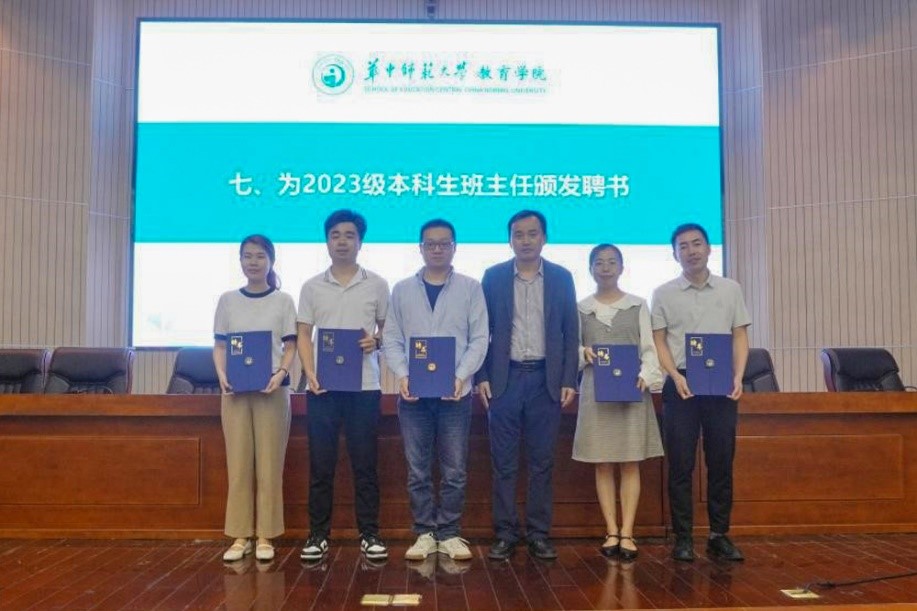 典礼上,田友谊宣读《关于聘任华中师范大学教育学院2023级本科生班主任的决定》。