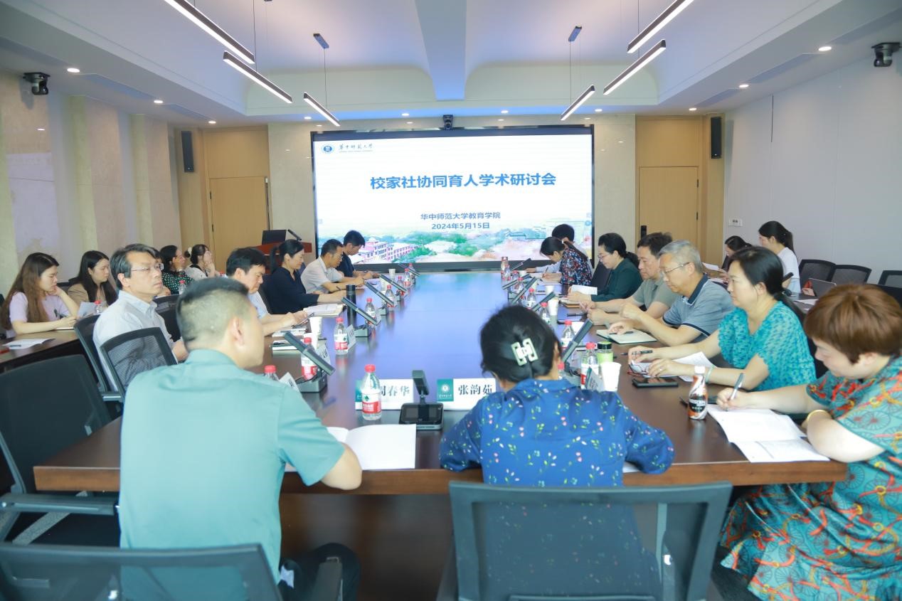 教育学院融媒体中心讯(通讯员 胡力扬 李靖 孙晶晶)2024年5月15日下午,校家社协同育人学术研讨会在田家炳楼901会议室召开。武汉市教育科学研究院院长丁华锋、洪山区实验小学校长张同祥、武汉市光谷实验中学校长马国新、华师一附中初中部副校长叶文娇、宜昌市人文艺术高中党委书记范俊明、宜昌市教育科学研究院家庭教育教研员周敏、华中师范大学心理学院教授谷传华、华中师范大学教育学院党委书记陈雪玲、华中师范大学教育学院教授、研究生院院长雷万鹏等专家学者出席本次会议,会议由华中师范大学教育学院副教授吴航和钱佳主持。