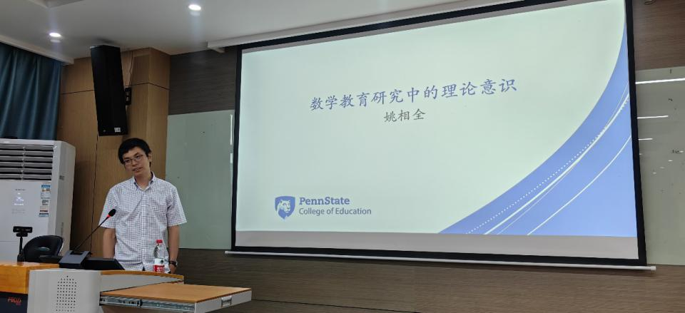 教育学院融媒体中心讯(通讯员 李婉澜 周小宇)2024年6月17日,“数学教育研究中的理论意识”学术报告会在我院905教室顺利举办。本次学术报告会由我院罗祖兵教授主持,由宾夕法尼亚州立大学副教授姚相全博士主讲,参会人员主要有教育学院罗枭等老师,教育学院研究生、本科生以及数统学院的部分学生。