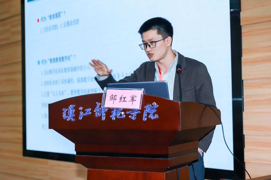 在专题报告中,邹红军副教授作了题为《面向教育强国的教育数字化:价值、挑战与路径》的报告,强调厘清数字化与教育强国的关系,探讨教育与技术之间的基本理论问题。