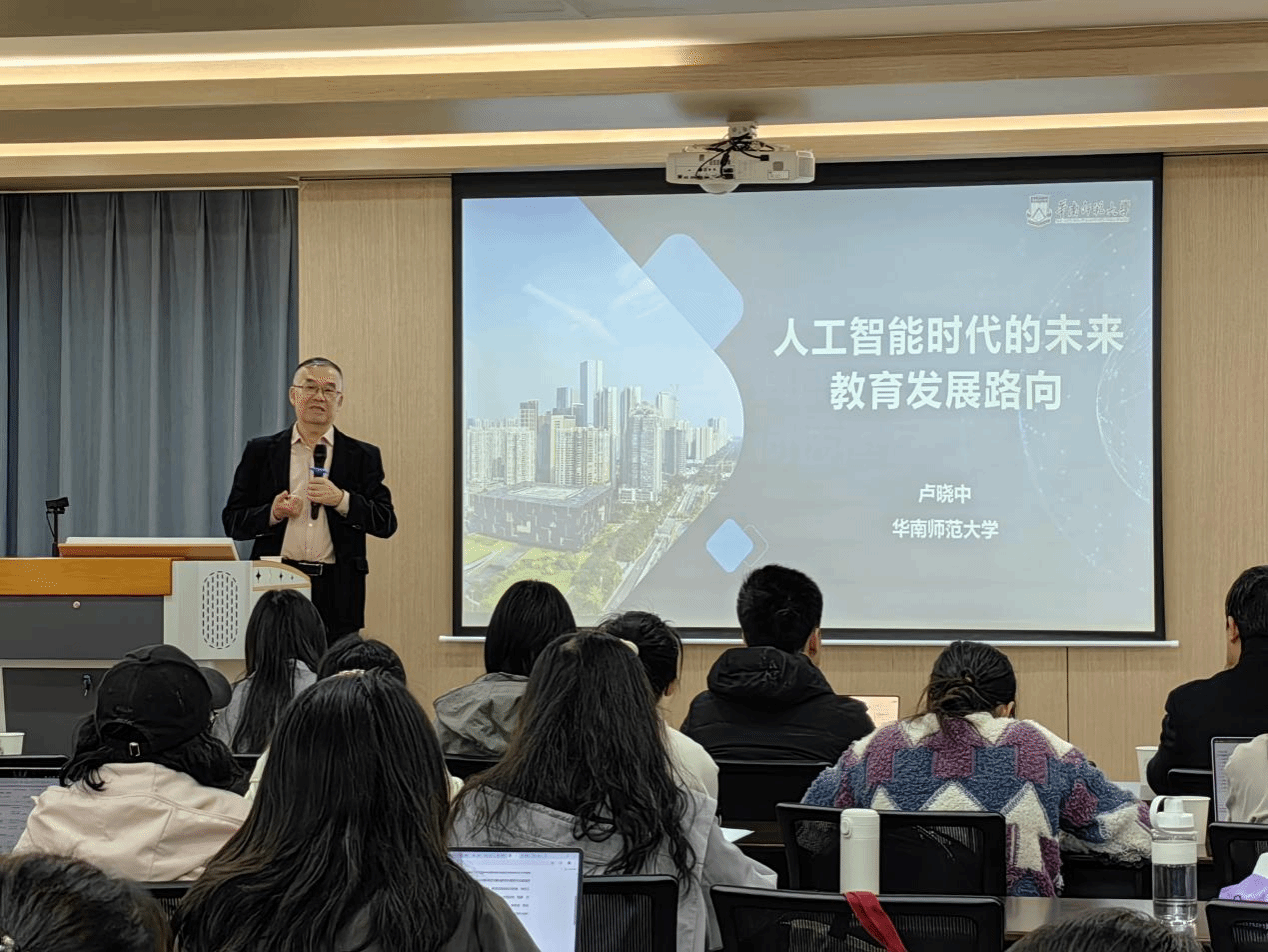 教育学院融媒体中心讯(通讯员 刘柳 王清莹)2025年3月22日下午,华中师范大学教育学院第73期博导论坛在田家炳教育书院601会议室顺利举行。华南师范大学粤港澳大湾区教育发展高等研究院院长卢晓中教授作题为《人工智能时代的未来教育发展路向》的专题报告。此次论坛由华中师范大学教育学院副院长田友谊主持,高等教育研究所欧阳光华教授、邢欢副教授、谭颖芳博士、程哲博士、徐伟琴博士及学院部分硕博研究生参加。