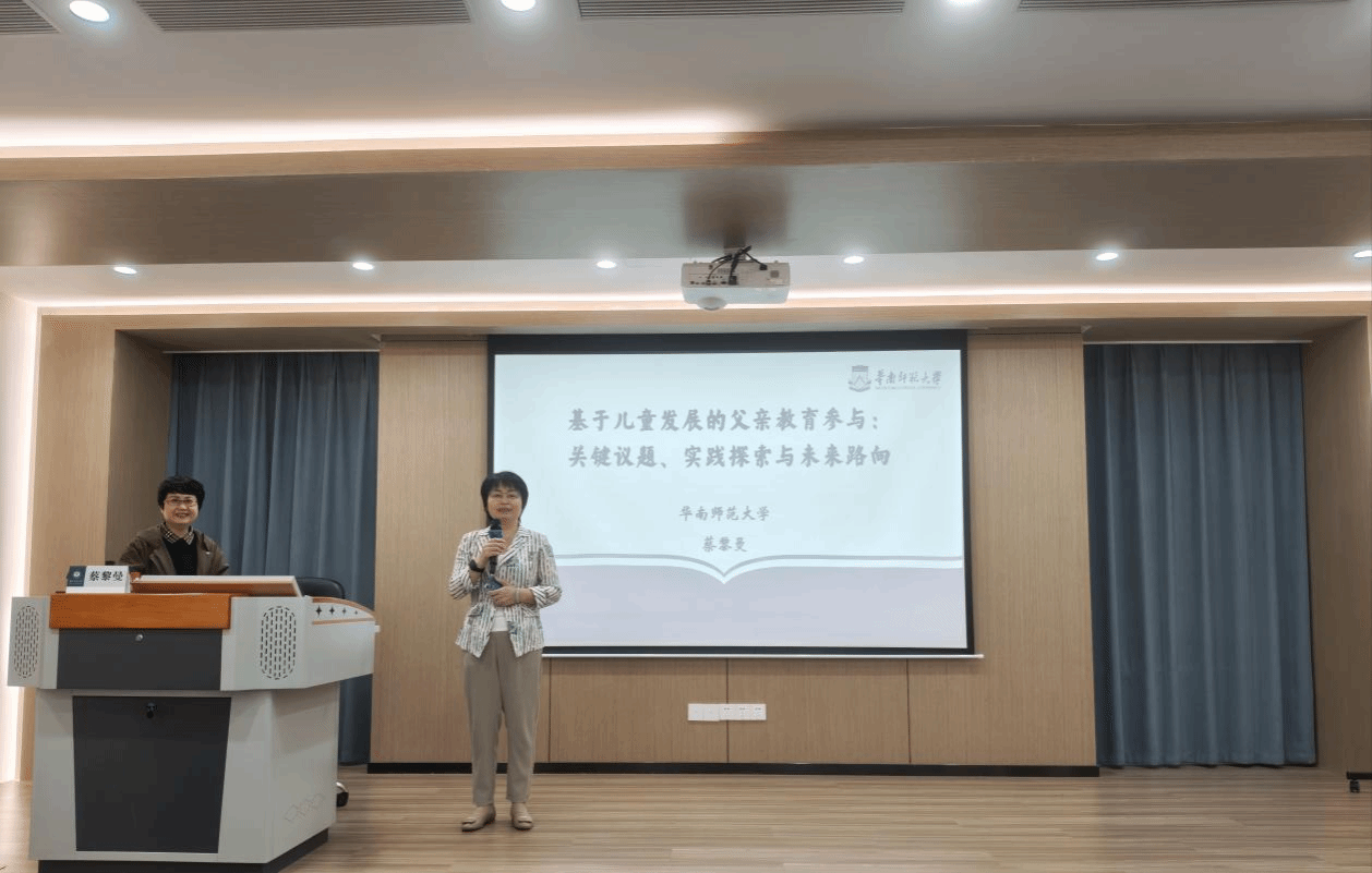 教育学院融媒体中心讯(通讯员 丁春艳 彭永汉 黄晓敏)2025年5月24日下午,第七十七期“博导论坛”在田家炳教育书院601会议室顺利举行。华南师范大学教育科学学院学前教育系主任蔡黎曼教授为我院师生带来题为《基于儿童发展的父亲教育参与:关键议题、实践探索与未来路向》专题讲座。此次论坛由早期教育中心主任蔡迎旗教授主持,部分教师及硕博研究生参加。