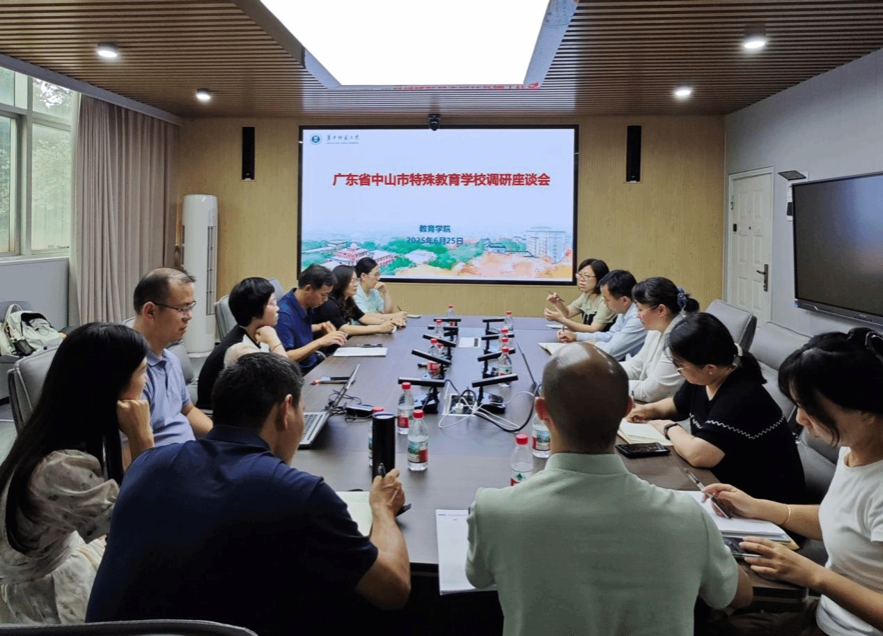 教育学院融媒体中心讯(通讯员 张子怡)2025年6月25日,广东省中山市特殊教育学校李园林副校长一行莅临我院开展交流活动。华中师范大学教育学院院长雷江华教授、特殊教育系主任孙玉梅副教授、融合教育教研室主任彭兴蓬副教授等出席了此次会议。会议由彭兴蓬主持。