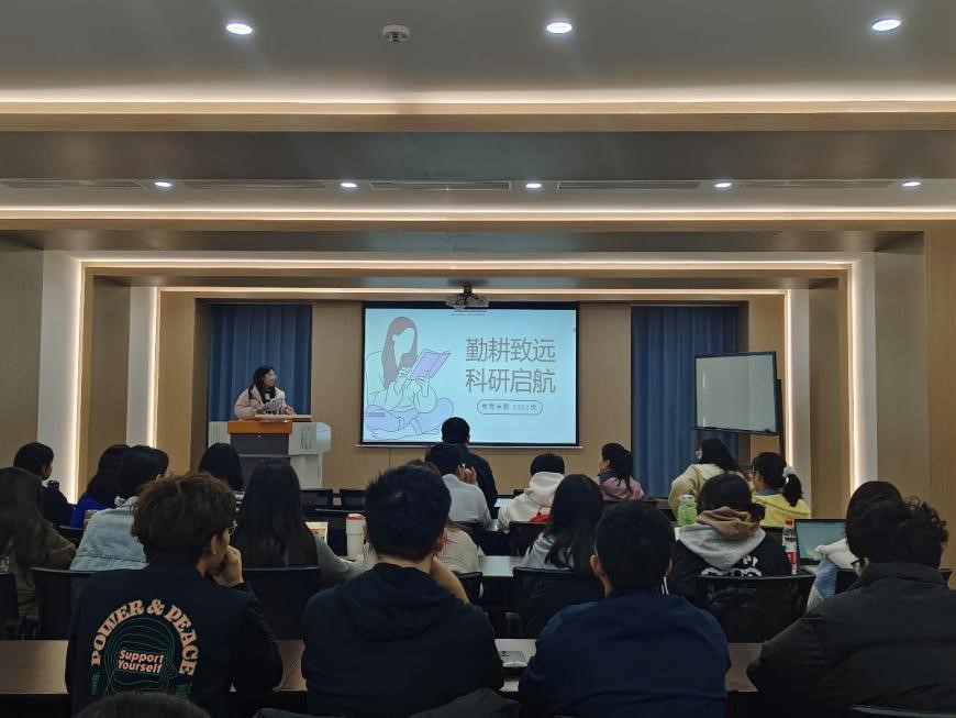 黄子涵就“什么是科研”“如何参与科研”“如何提升科研能力”三方面作分享,她介绍了中国“互联网+”大学生创新创业大赛、“挑战杯”全国大学生课外学术科技作品竞赛、“挑战杯”中国大学生创业计划大赛等常见科创赛事的参赛时间、方式和准备重点,鼓励同学们积极参与。