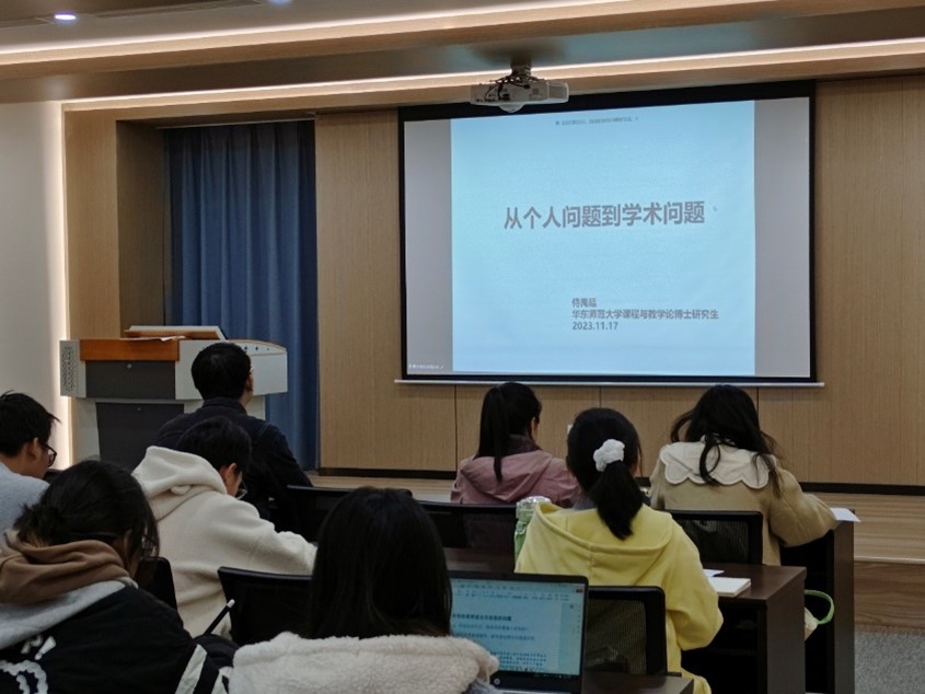 校外班主任、华东师范大学课程与教学论博士研究生侍禹廷通过腾讯会议线上参与本次主题班会,他着重以“从个人问题到学术问题”为主题展开介绍,引导同学们先从个人关心的问题入手,思考问题背后反映的教育现实,寻找可靠的信息来源,并进行实践调研,将研究的问题逐步转化为社会议题。