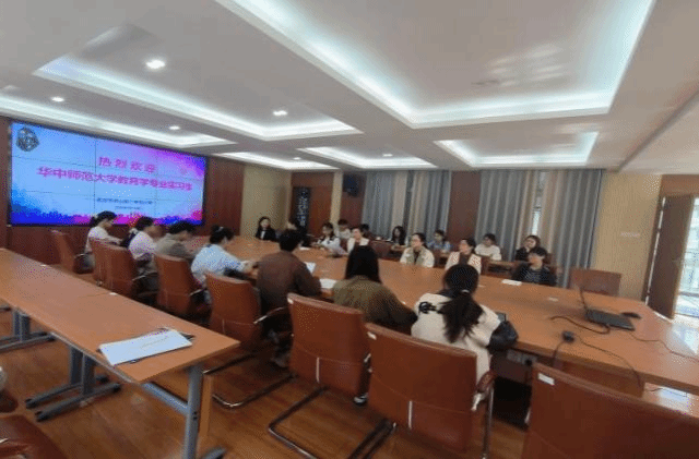 师生对接当天,即4月14日下午,华中师范大学教育学院本科生教育实习广埠屯小学队启动仪式在广埠屯小学3楼会议室举行。广埠屯小学校长舒畅、7位实习指导教师、教育学院程豪博士、2022级教育学专业13名本科生以及2023级课程与教育论专业1名研究生参与了实习启动仪式。
