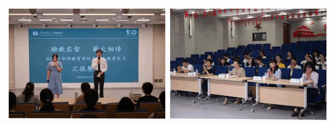 在教育实习工作汇报环节,团队实习工作总结由杜涵超同学以《躬耕杏坛育新苗 春生夏长映初心》为题进行汇报。她详细总结了实习期间团队的工作成果与经验教训。个人实习工作感言部分,陈欣然同学以《耘梦三尺讲台 汲智扬帆星海》为题,分享了她在实习过程中的感悟与收获;霍方玉同学则以《等枝桠 成繁花》为题,讲述了自己在教育道路上不断进步、实现自我提升的过程。